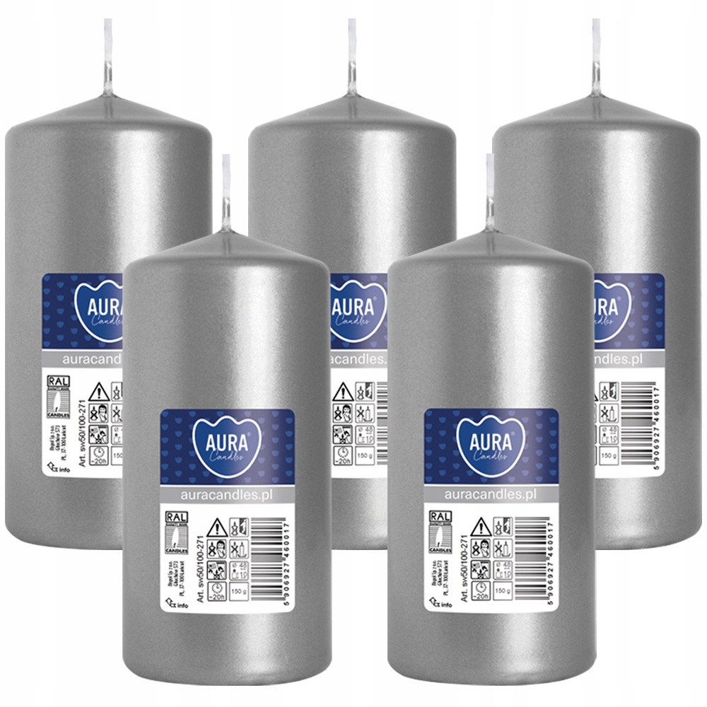 НАБІР 5 НАСТІЛЬНИХ СВІЧОК ЦИЛІНДР КЛАСИЧНА СВІЧКА 10см СРІБНА