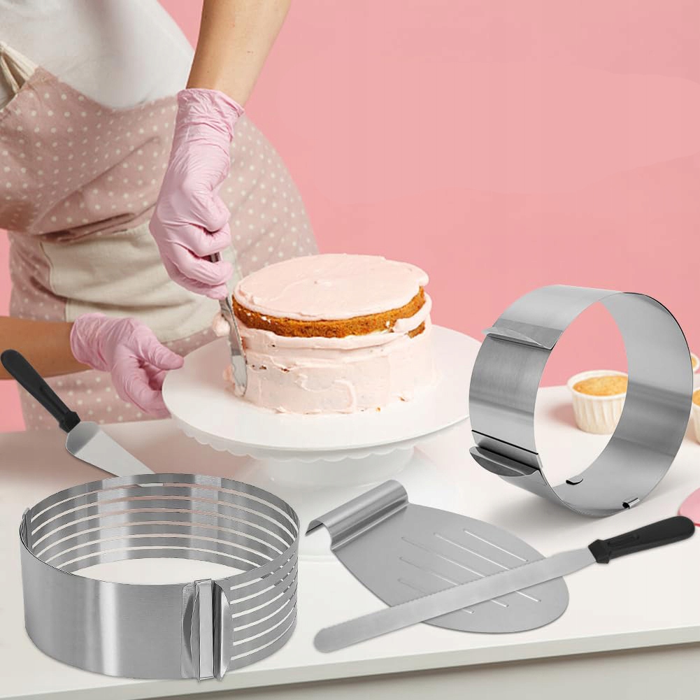 Вспомогательный нож для торта + регулируемое кольцо для торта + длинный нож для торта + подъёмник для торта из нержавеющей стали, набор из 5 аксессуаров для торта, вспомогательный нож для торта, аксессуары для выпечки, аксессуары для торта, для дома/кухни
