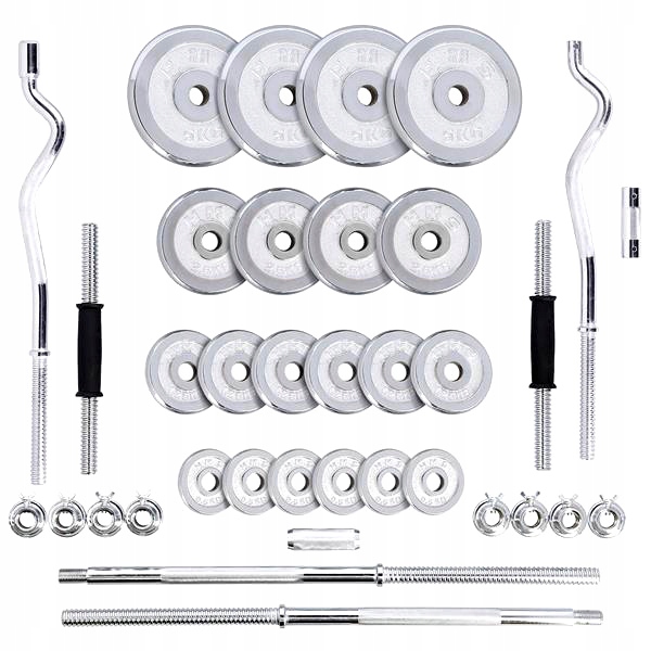 Zestaw 55 KG Hantli Stalowe Chromowane Regulowane Sztanga 4W1 HMS