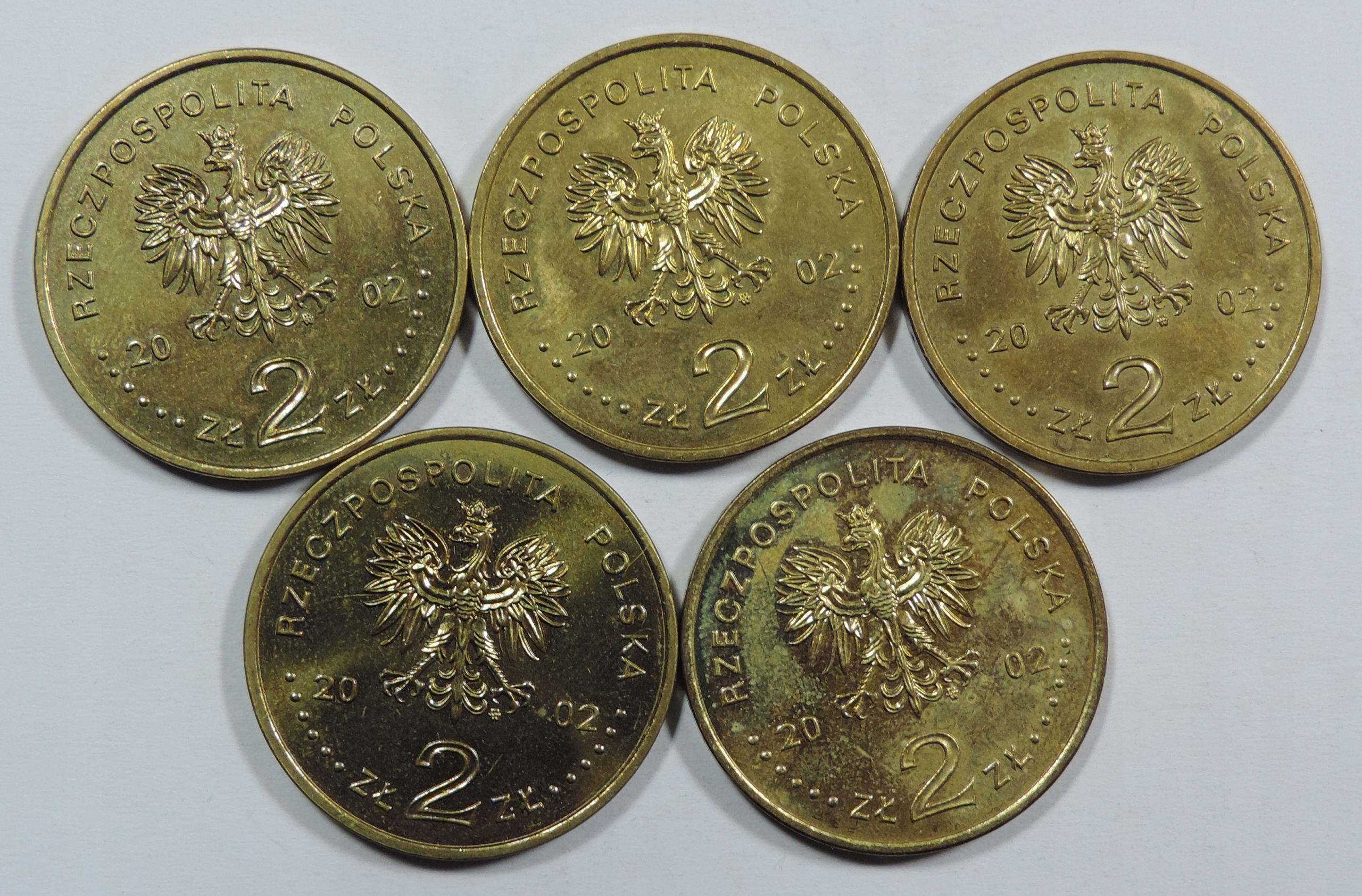 НАБОР 5x МОНЕТОВ 2 ЗЛОТЫХ - ПОЛЬША - 2 ЗЛОТА - КОЛЛЕКЦИОННАЯ -OY6334