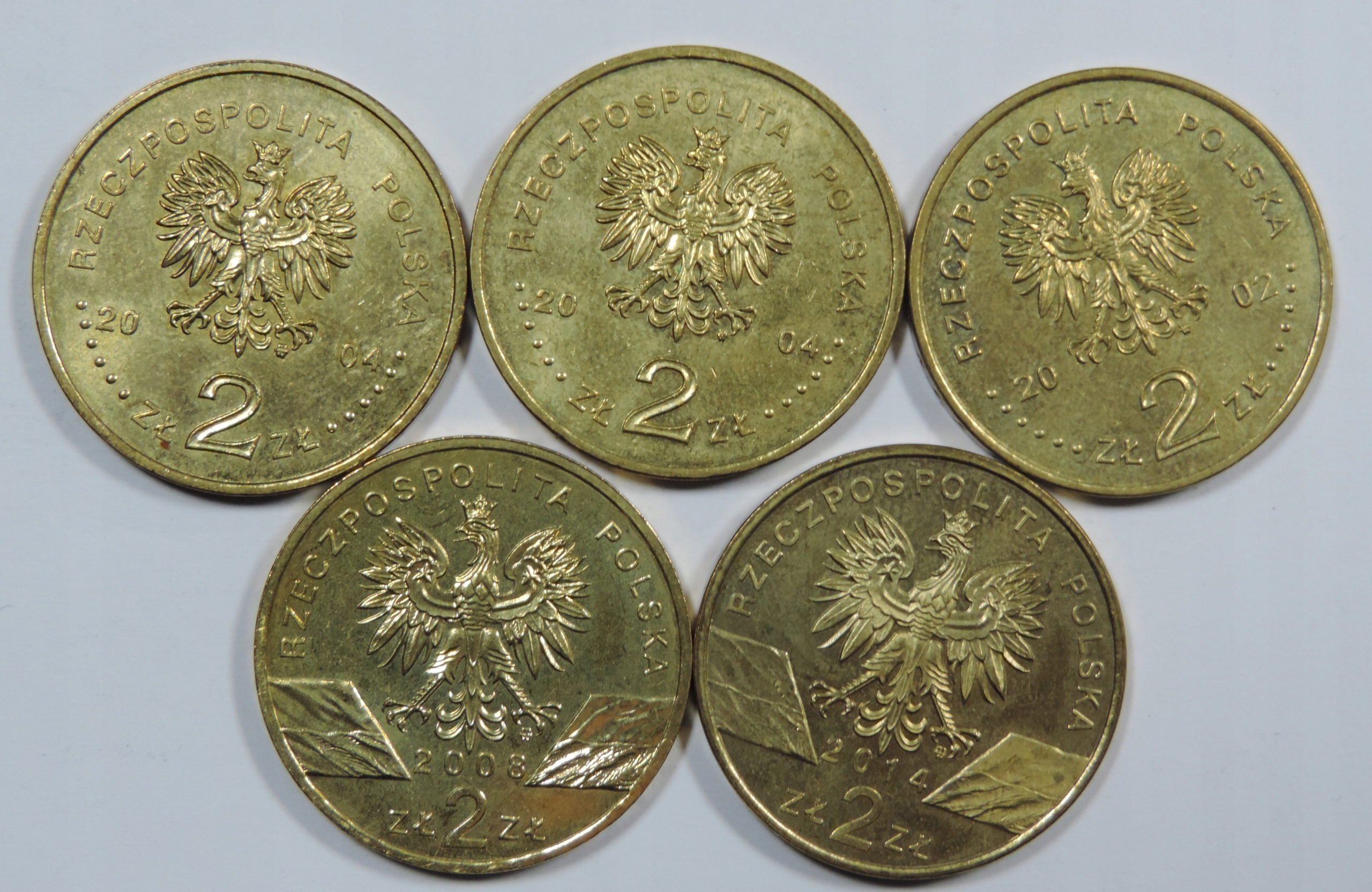 НАБОР 5x МОНЕТОВ 2 ЗЛОТЫХ - ПОЛЬША - 2 ЗОЛОТЫХ - КОЛЛЕКЦИОННЫЙ -YA454