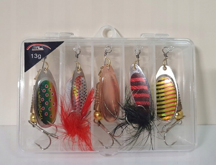 НАБОР 5x SPINNER STEET SPINNER SPINING PREDATOR PIKE MIX 13 г + ЧЕХОЛ