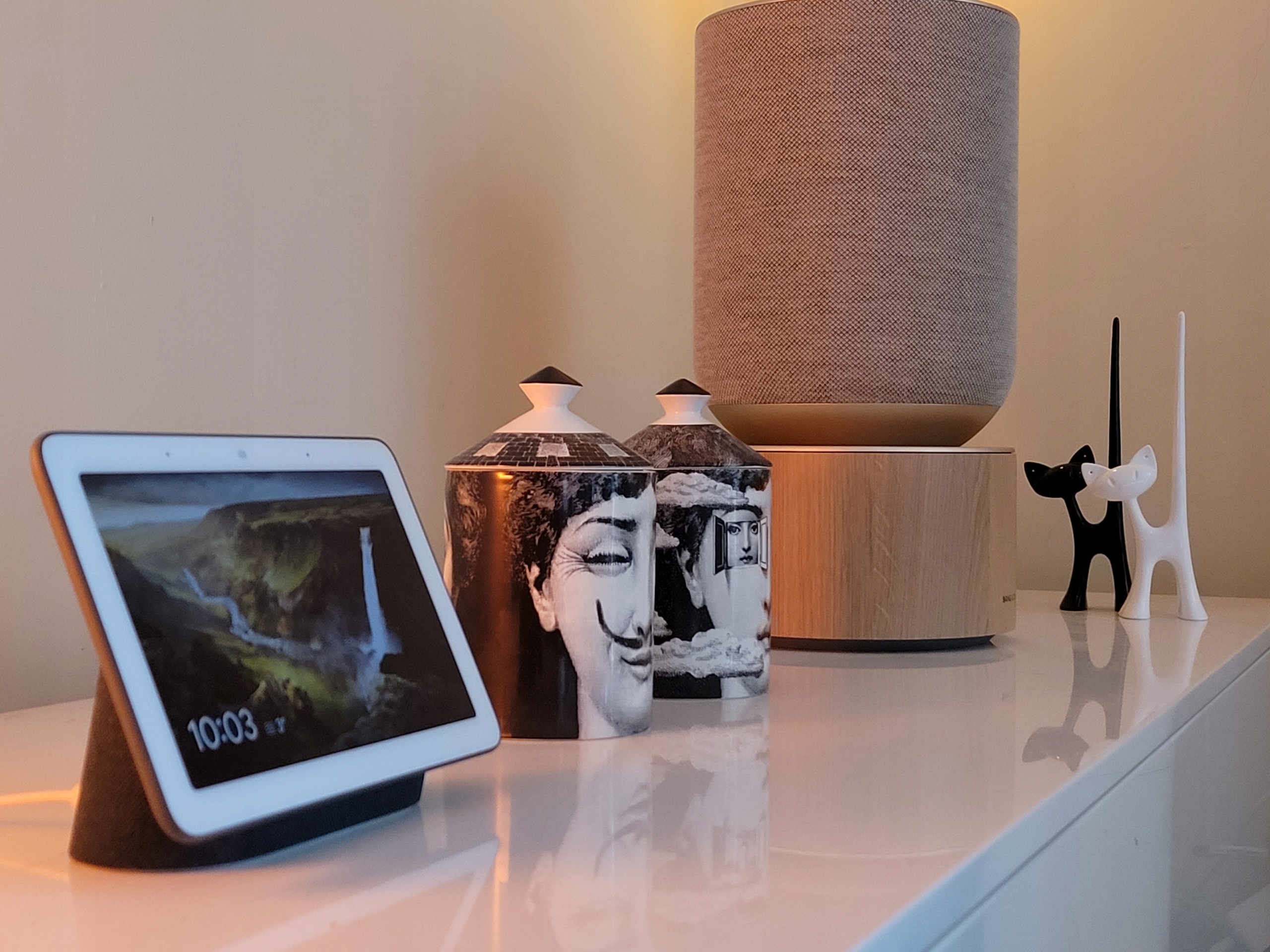 Благодаря характерной цилиндрической форме устройство красиво смотрится со всех сторон и прекрасно вписывается в интерьер практически любого интерьера. Основание из массива дуба и цилиндр, покрытый эксклюзивной бесшовной тканью, придают этому уникальному аудиооборудованию вневременной вид.