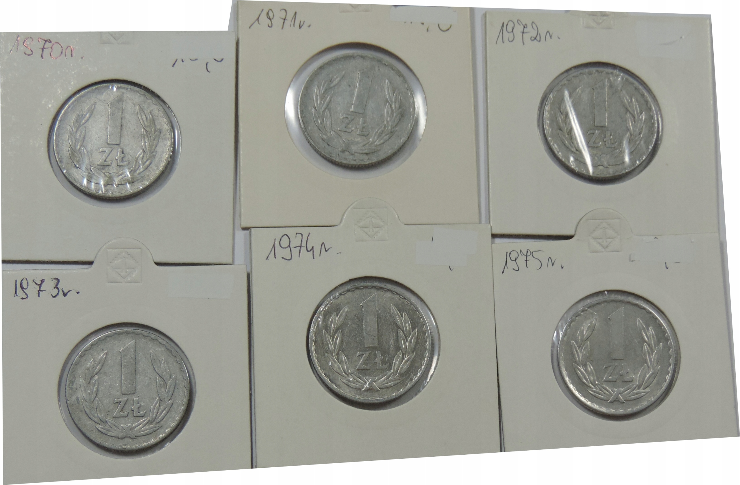 НАБОР 6x ОБРАЩАЮЩИХСЯ МОНЕТ - ПОЛЬША PRL - 1 ЗЛОТИЙ - MIX -OY9152
