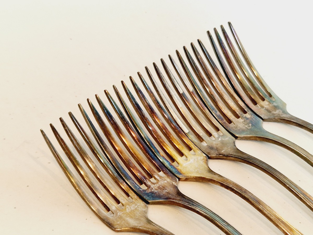Вилки не чистились - покрыты оригинальной, старой, темной патиной.