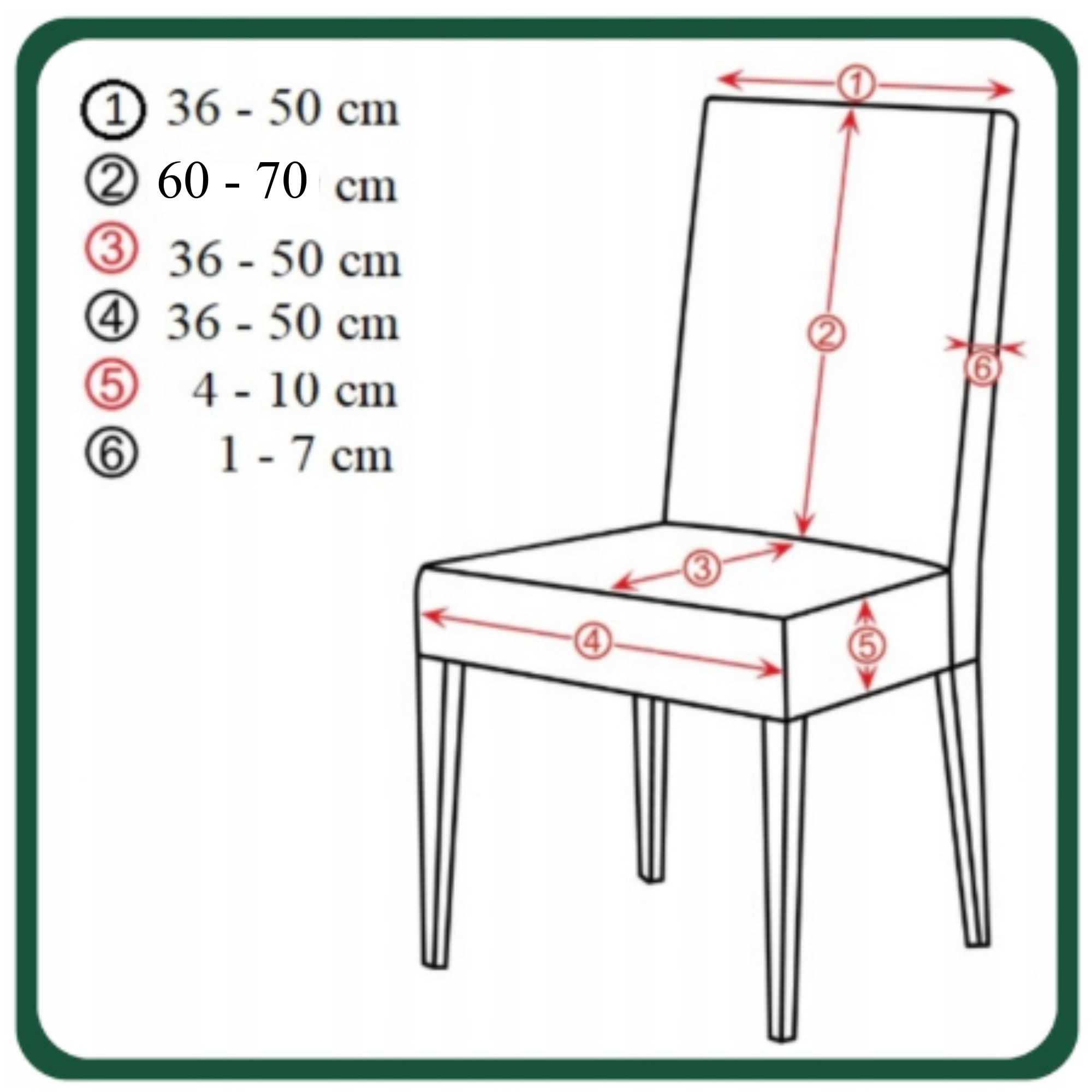 На рисунке ниже показаны размеры стульев, на которые подходит наш чехол. Если ваш стул на +- 2 см больше/меньше - наш чехол все равно подойдет!