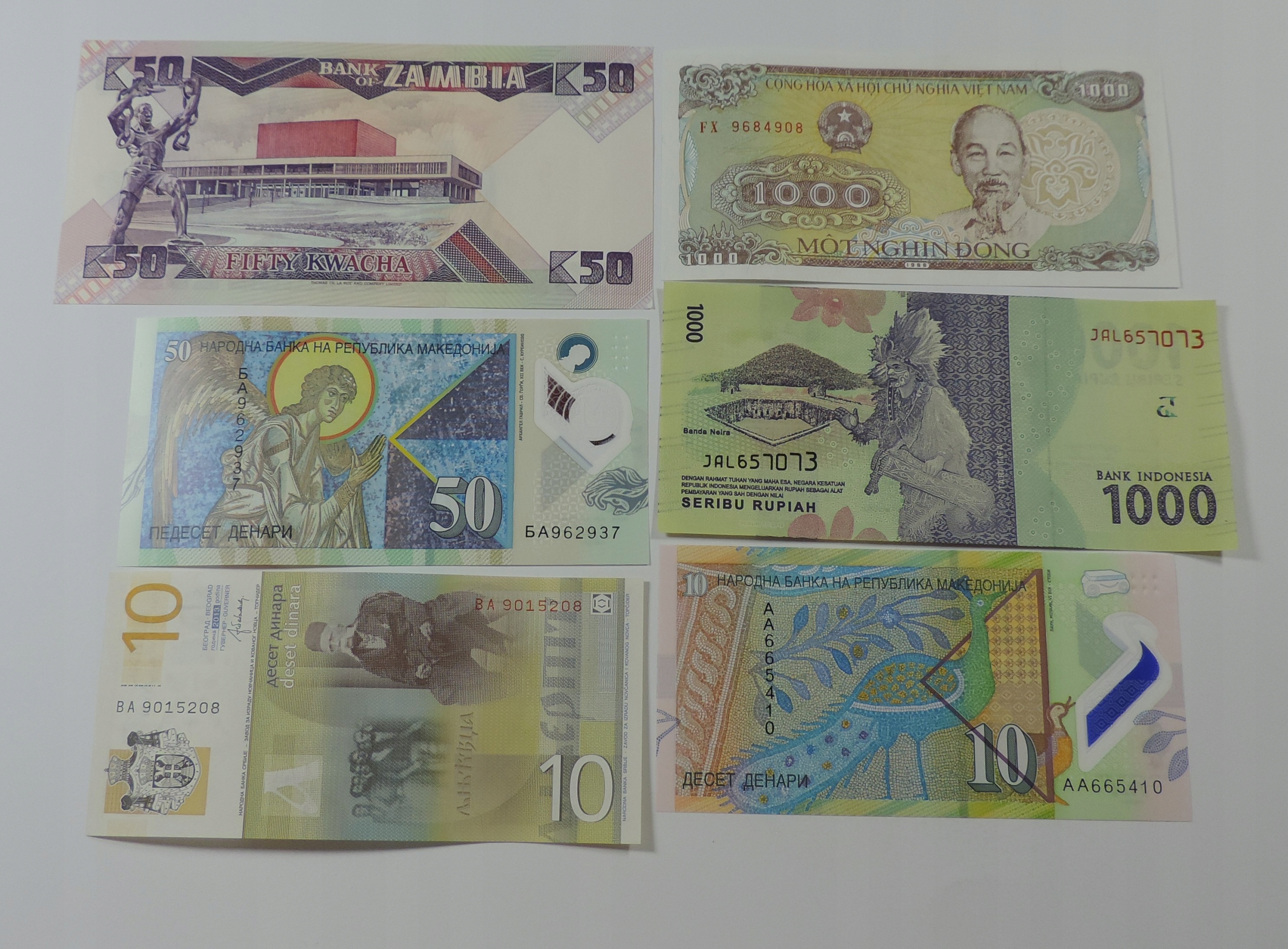 НАБОР 6x БАНКНОТ - МИКС - ОБРАЩЕНИЕ - КОЛЛЕКЦИОНЕР - МИР -OY9042