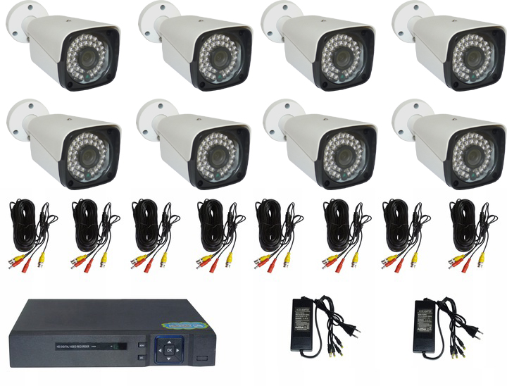 Готовый комплект для самостоятельной сборки — 8 уличных камер FULL HD, рекордер, аксессуары [модель: SET8chD_FULLHD]