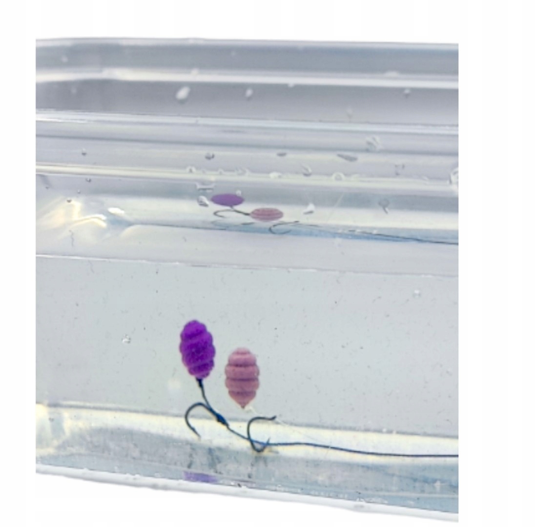 Все Личинки имеют высокую плавучесть для лягушек, крючки, которые их уравновешивают (важно: Балансируем Личинки крючками, а не штыками) имеют размеры 8, 10, 12. Плавучесть для нас очень важный вопрос и именно это выделяет нас на рынке наживок. Приманки мягкие, что делает их идеальными для штыкового затыкания, а благодаря структуре личинки (пазы) надежно держатся на поводках с помощью резинки
