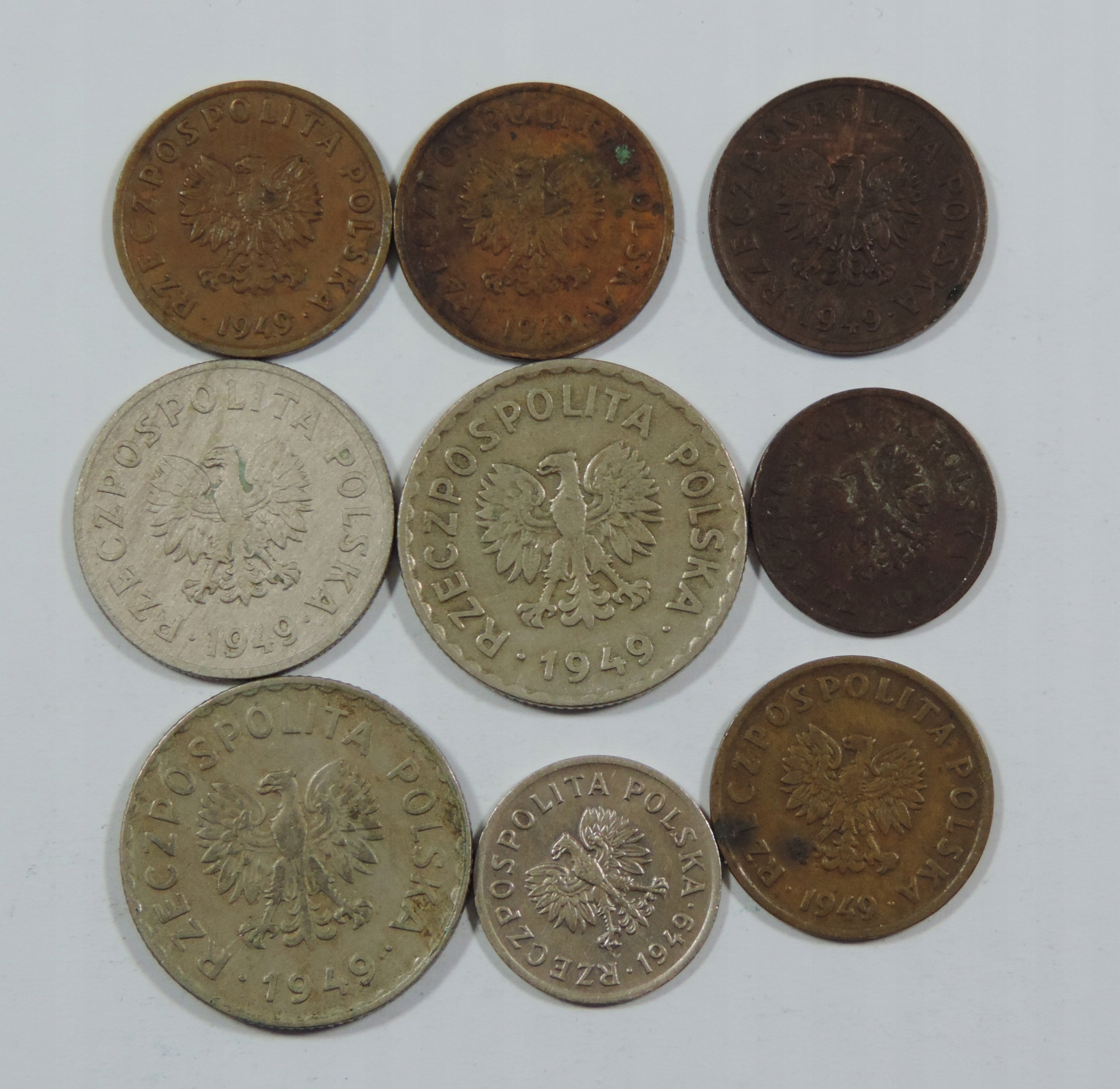 НАБІР 9 ОБРАТНИХ МОНЕТ - МОНЕТА ПРЛ - 1949 - ПОЛЬЩА - МІКС -OE9413