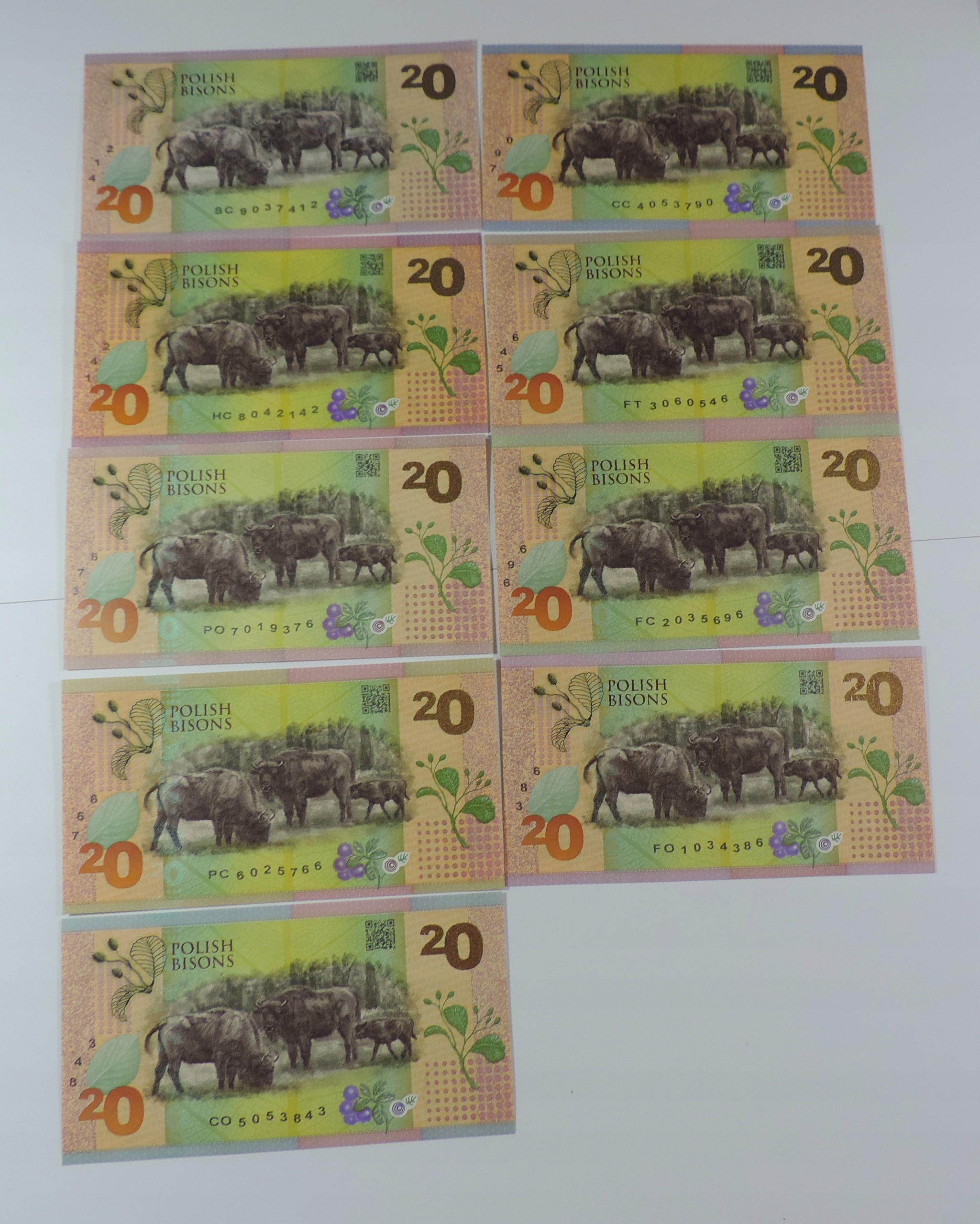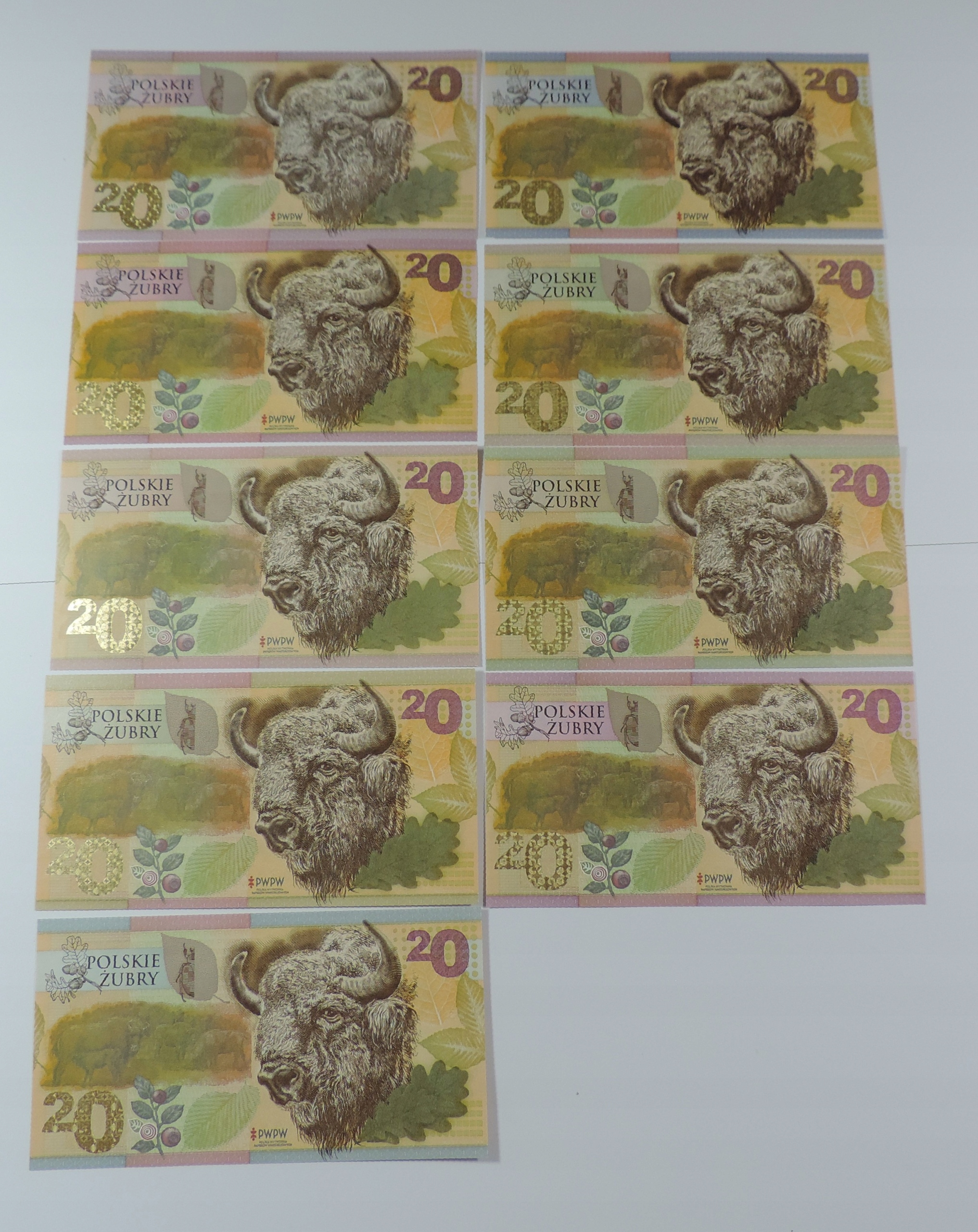 Набор 9x банкнота - стоимость - Pwpw - Мощность земли - żubr -oy3125