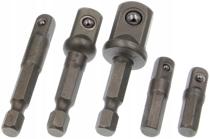 Профессиональный набор переходников для торцевых ключей - 5 шт. Переходники позволяют, например, работать с отверткой с насадками. Элементы изготовлены из инструментальной стали. Набор абсолютно новый, упакован в блистер.