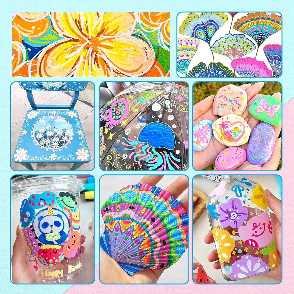 - Набор акриловых маркеров с кисточкой, быстросохнущих и нетоксичных, идеально подходит для росписи камня, фарфора, стекла, холста, керамики, дерева и металла.