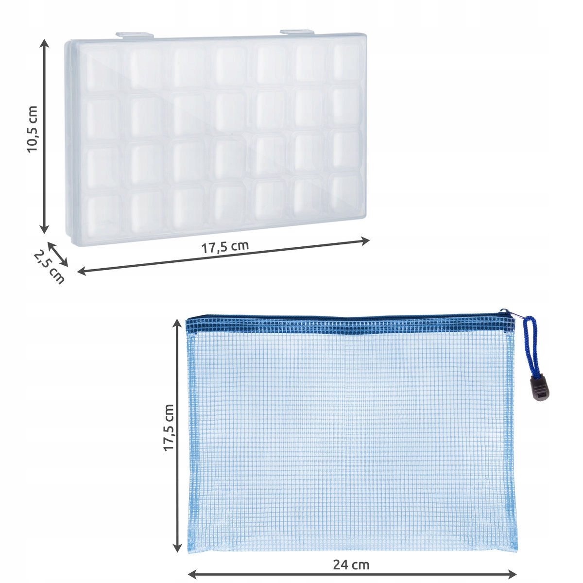 В комплект «Сделай сам» для бриллиантов входит очень практичная сумка для инструментов, а также органайзер для бриллиантов и наклейки для их маркировки на органайзере. Благодаря этим элементам вы сможете легко поддерживать порядок и аккуратно отделять отдельные элементы, входящие в комплект. Органайзер закрытый, поэтому бриллианты не потеряются и не рассыпятся.