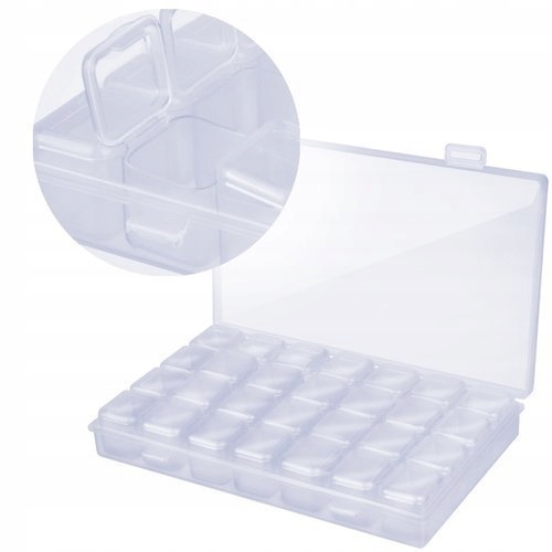 В органайзере целых 28 отделений, в него легко поместятся все ваши бриллианты. Кроме того, вы можете описать и покрыть бриллианты любого цвета. Отделения соединены между собой 4-мя. Их можно снимать для вышивки.