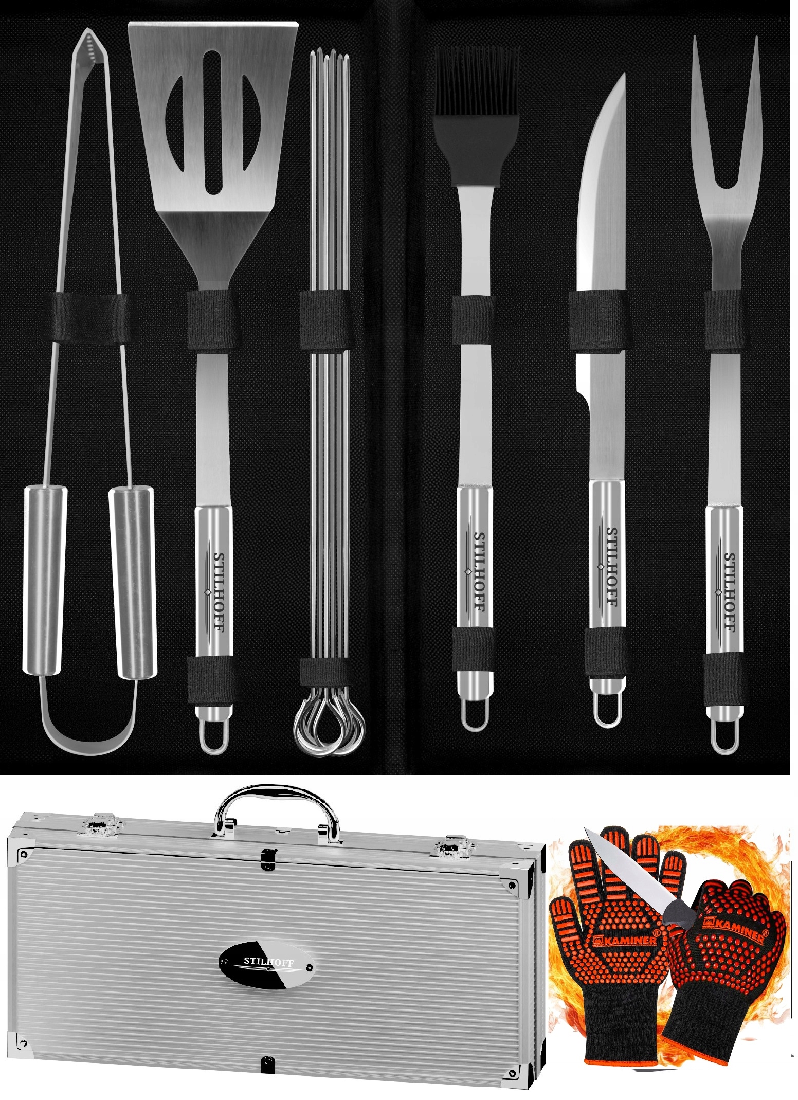 Набір аксесуарів для БАРБЕКЮ STILHOFF столові прилади 11шт 9+чемодан+рукавички