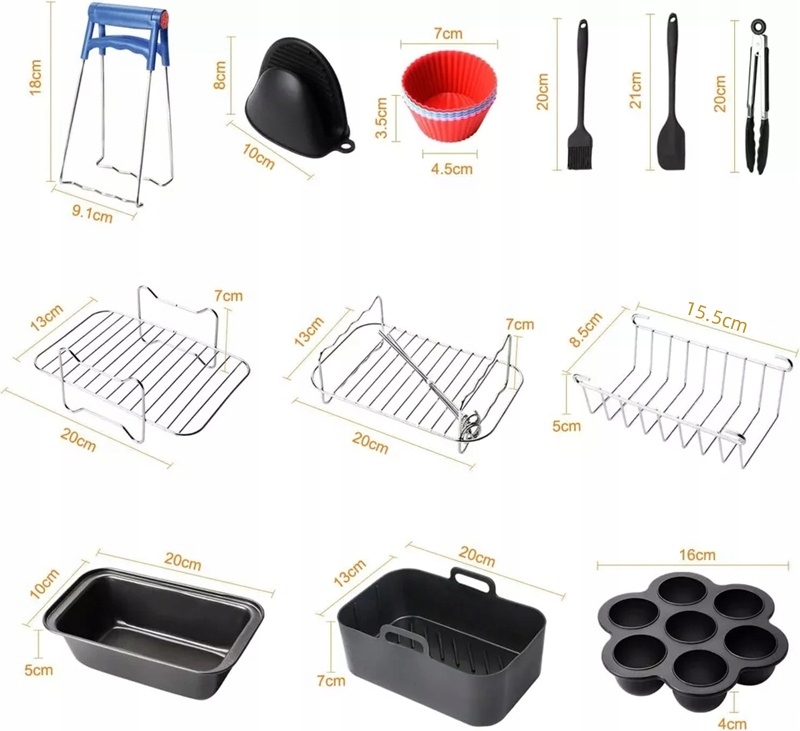 - Полный набор аксессуаров для аэрофритюрницы подходит для 99% блюд, приготовленных в этом устройстве!
