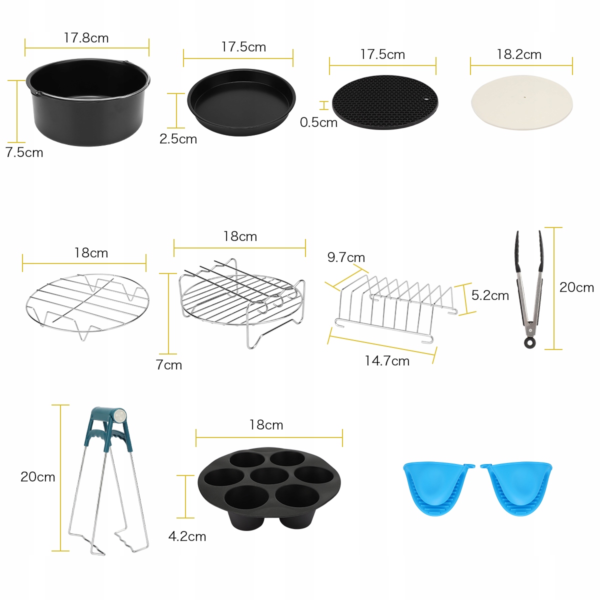【Подходит для большинства марок аэрофритюрниц】 Размер нашего комплекта аксессуаров для аэрофритюрниц составляет 7 дюймов, что подходит для большинства аэрофритюрниц объемом от 3,5 до 5,8 кв. (от 4,0 до 8 кв.), таких как Gowise, Phillips, Tower, Princess, Duronic, Cozyna и т. д. и других аэрофритюрниц.