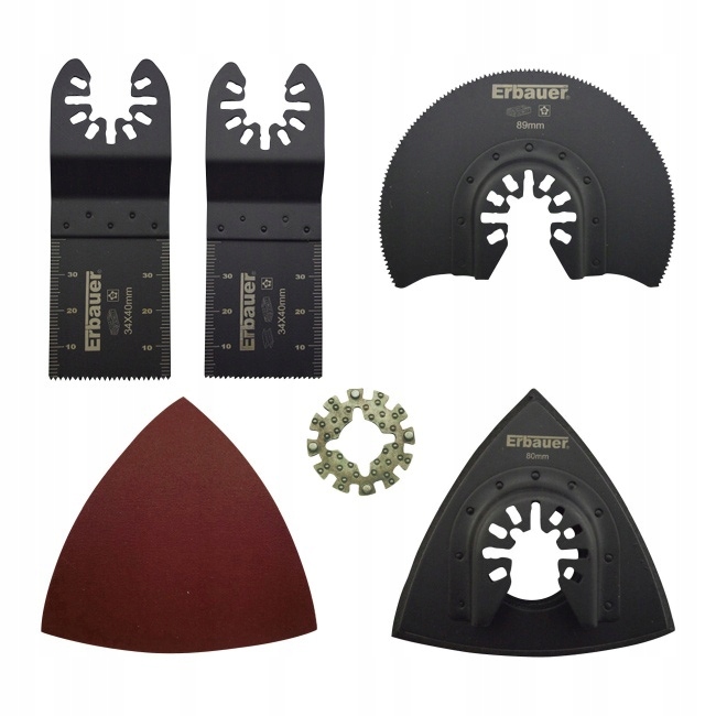 Erbauer - Дополнительная информация включена: абразивная бумага из дерева и краски, глубокий лезвие HCS (34 мм), обработанное биметальное лезвие (34 мм), обработанное лезвие сегмента HCS (89 мм) и обработанное основание износа (80 мм)