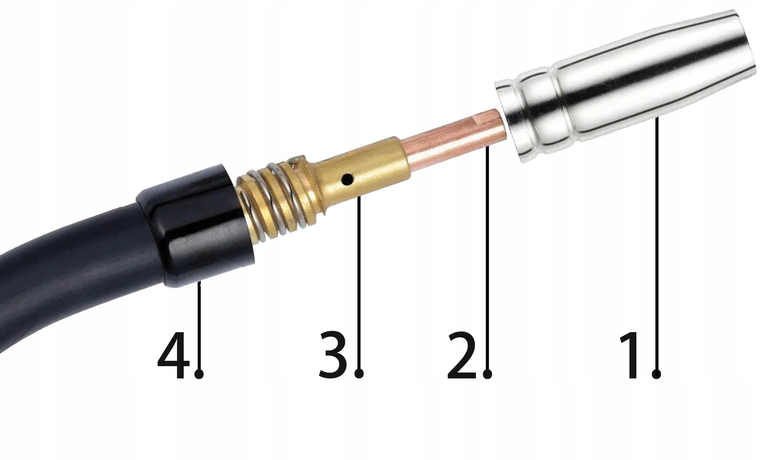 Набор основных элементов, необходимых для оснащения каждой сварочной горелки MIG/MAG стандартом MB 15