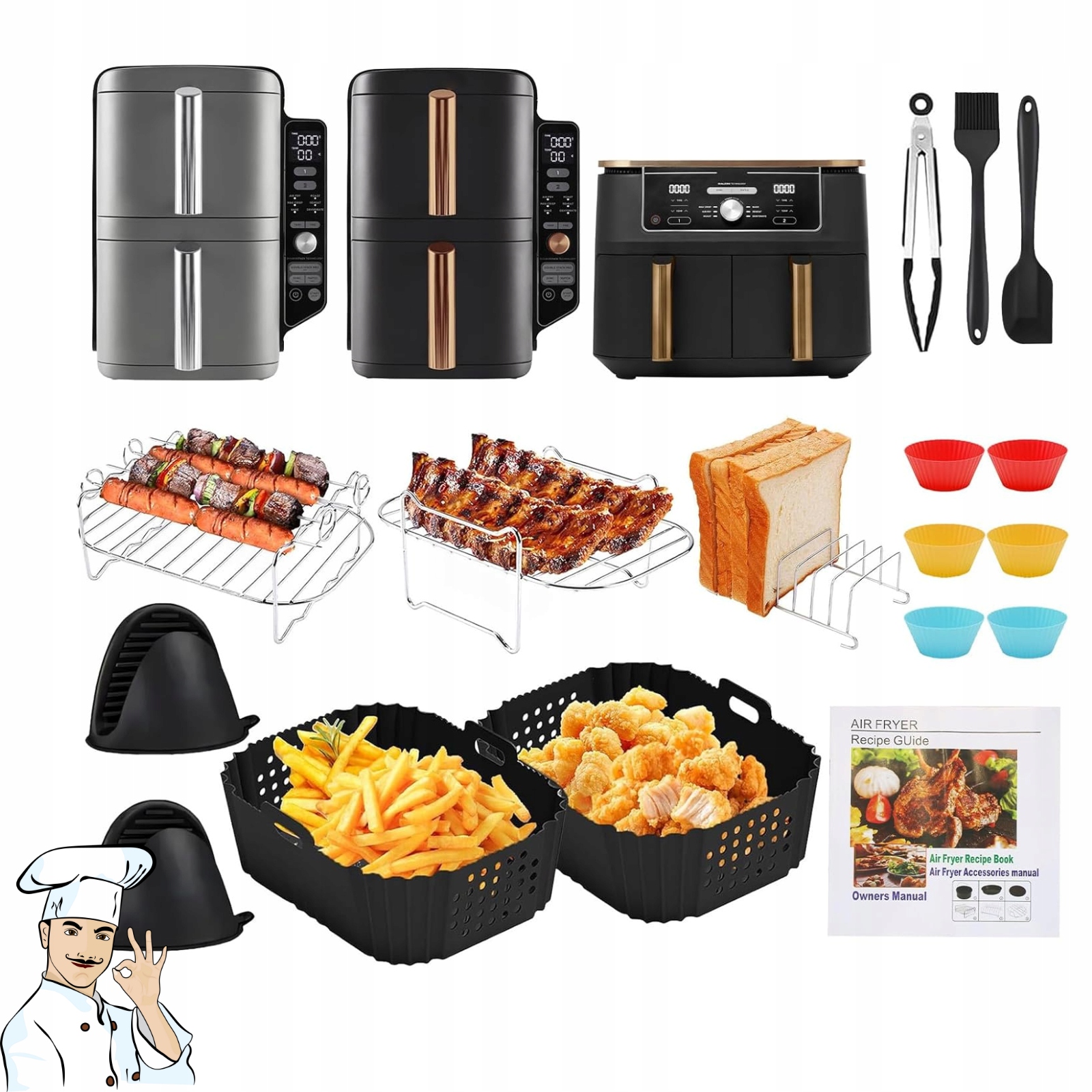 АКСЕССУАРЫ ДЛЯ NINJA DOUBLE STACK 16 аксессуаров были разработаны специально для моделей Ninja Double Stack XL SL400EU и Ninja Foodi MAX Dual Zone AF400EU, чтобы идеально подходить к контейнерам объемом 4,75 л и максимально использовать их потенциал.