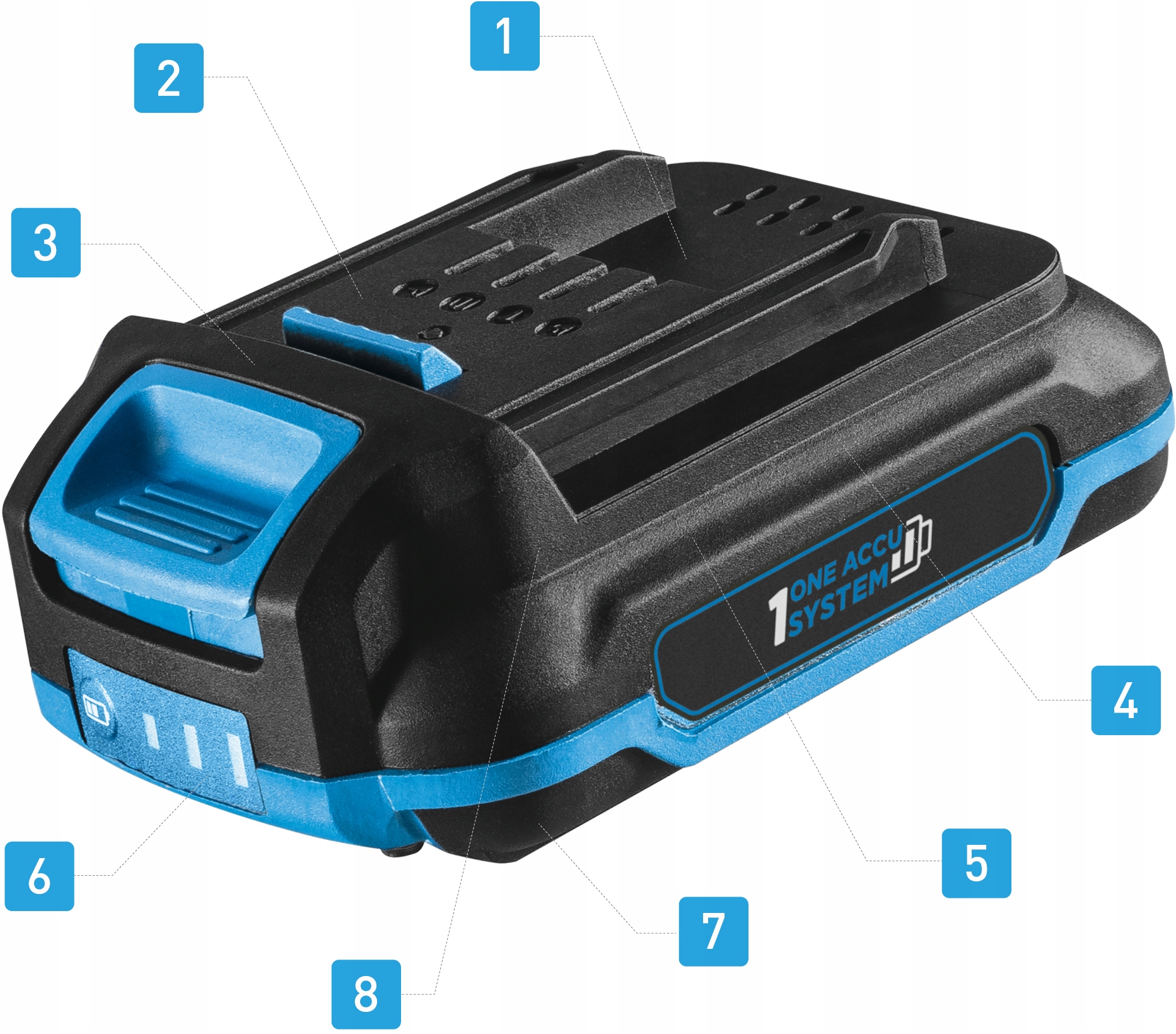 <ул>Аккумулятор 2 Ач, 18 В, OneAccuSystem