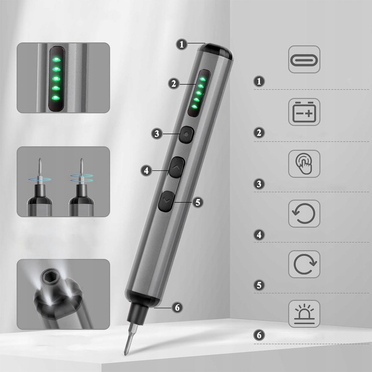 - Мини-электрическая отвертка имеет 68 бит в 9 категориях, которые помогут выполнить самые разные ремонтные задачи.