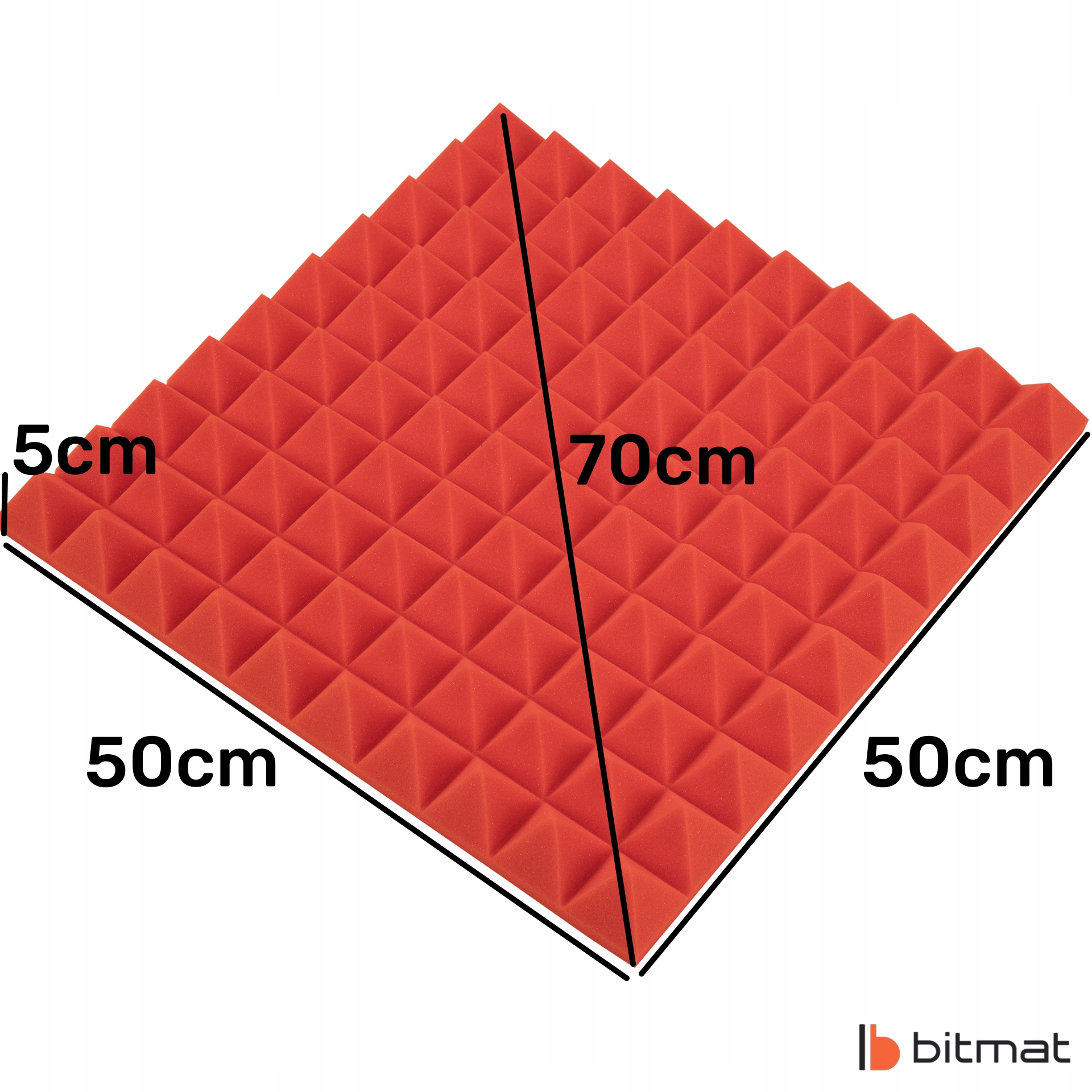 Акустический пенопласт в форме пирамиды 50 см х 50 см от Bitmat — очень хороший способ улучшить акустику в гостиных, офисах или репетиционных залов, а также защиту от нежелательных отражений звука. Пенопласт с открытой ячеистой структурой предназначен для поглощения и рассеивания звуковых волн для устранения эха и сокращения времени реверберации. Помимо своих акустических свойств, он также предлагает привлекательный внешний вид, который подойдет для большинства помещений.