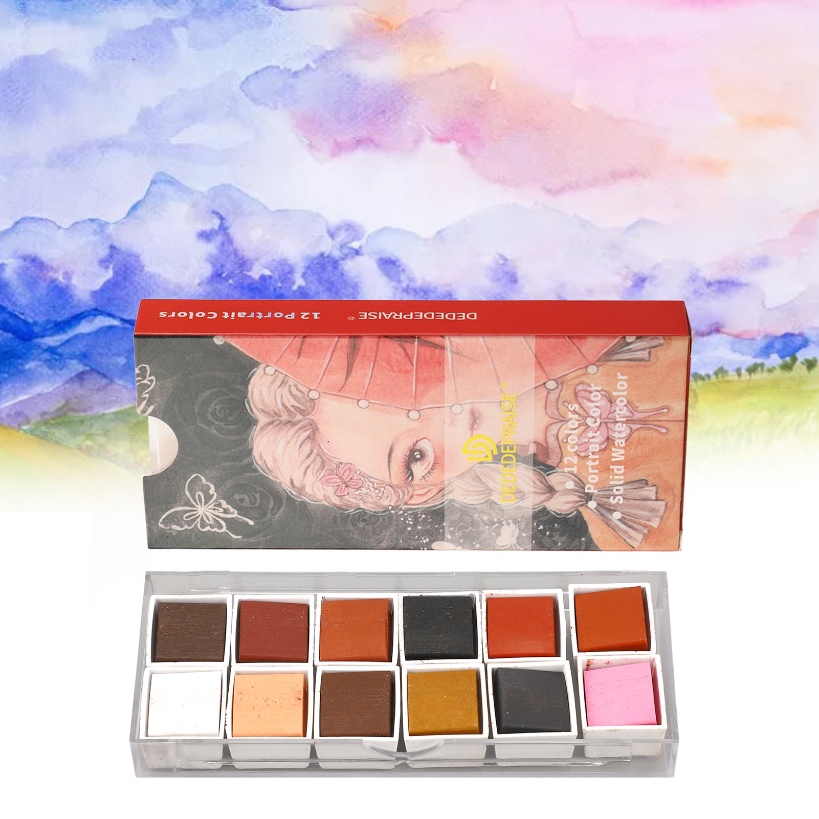 Особенность:1. 12 цветов: набор акварельных красок включает 12 уникальных, привлекательных ярких цветов, которые вы можете использовать, а мелкий пигментный порошок легко растворяется в воде.
