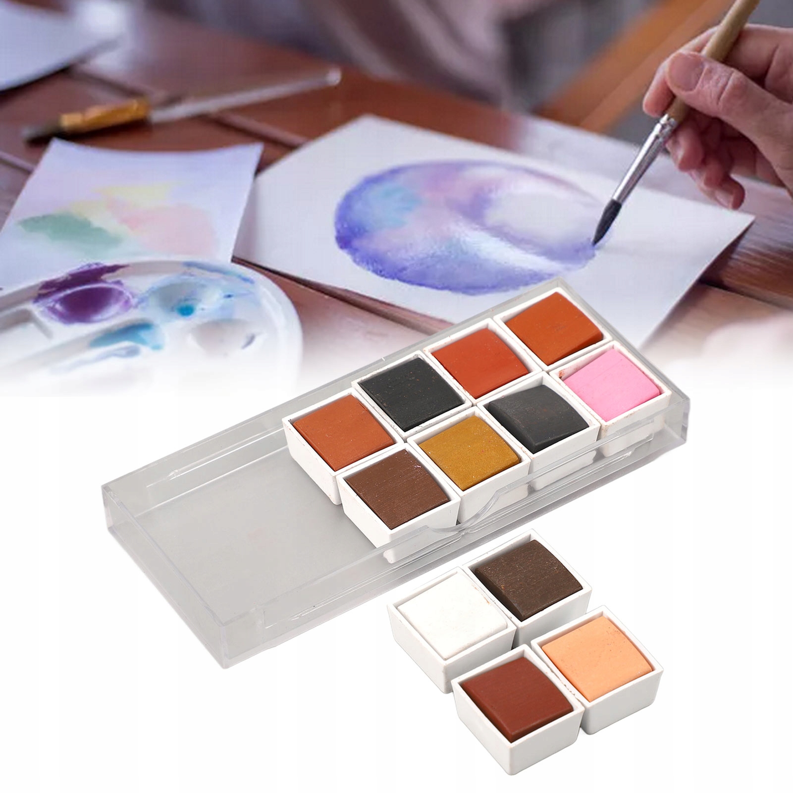 Функции продукта: полусухой акварельный горшок, насыщенный цвет и более удобный в использовании. Как только она высохнет и превратится в сплошную акварель, используйте ту же сплошную акварель, цвет и качество не изменятся.