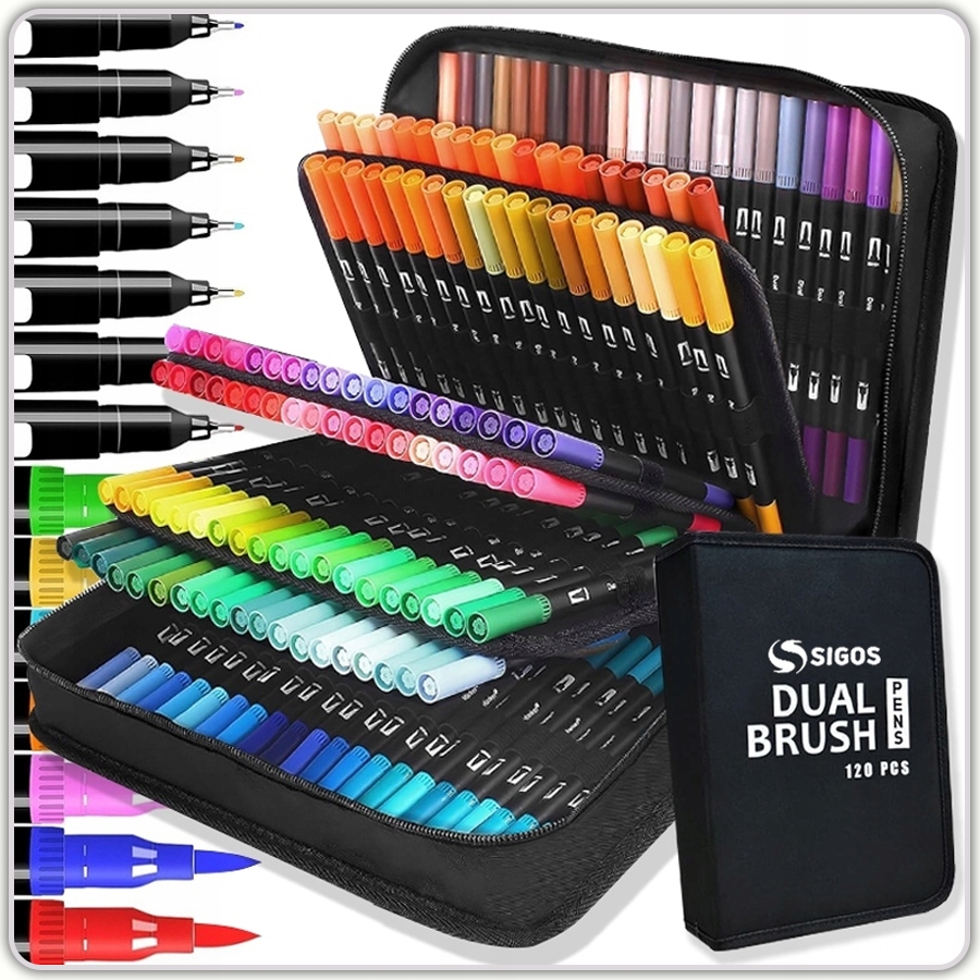 ✅ 120 шт. ВОДНЫЕ ЦВЕТНЫЕ МАРКЕРЫ ДВУХСТОРОННИЕ МАРКЕРЫ + КОРПУС!