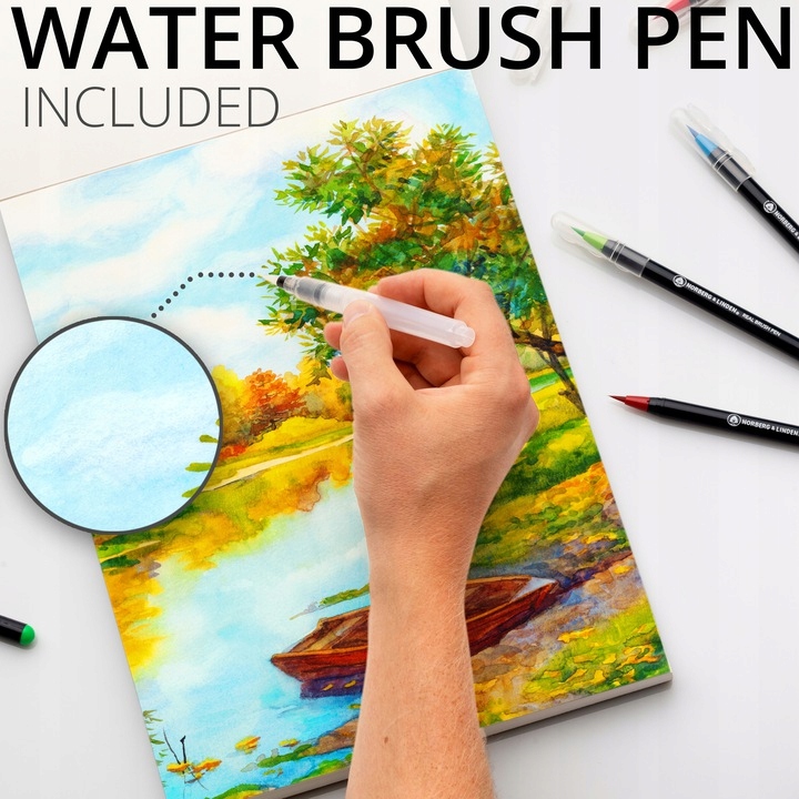 Толстый и прочный альбом для рисования. Какой смысл в акварельной кисти без поверхности для рисования? Мы включили 32-страничный бескислотный альбом для акварельных рисунков, чтобы вы могли немедленно приступить к работе над своим шедевром.