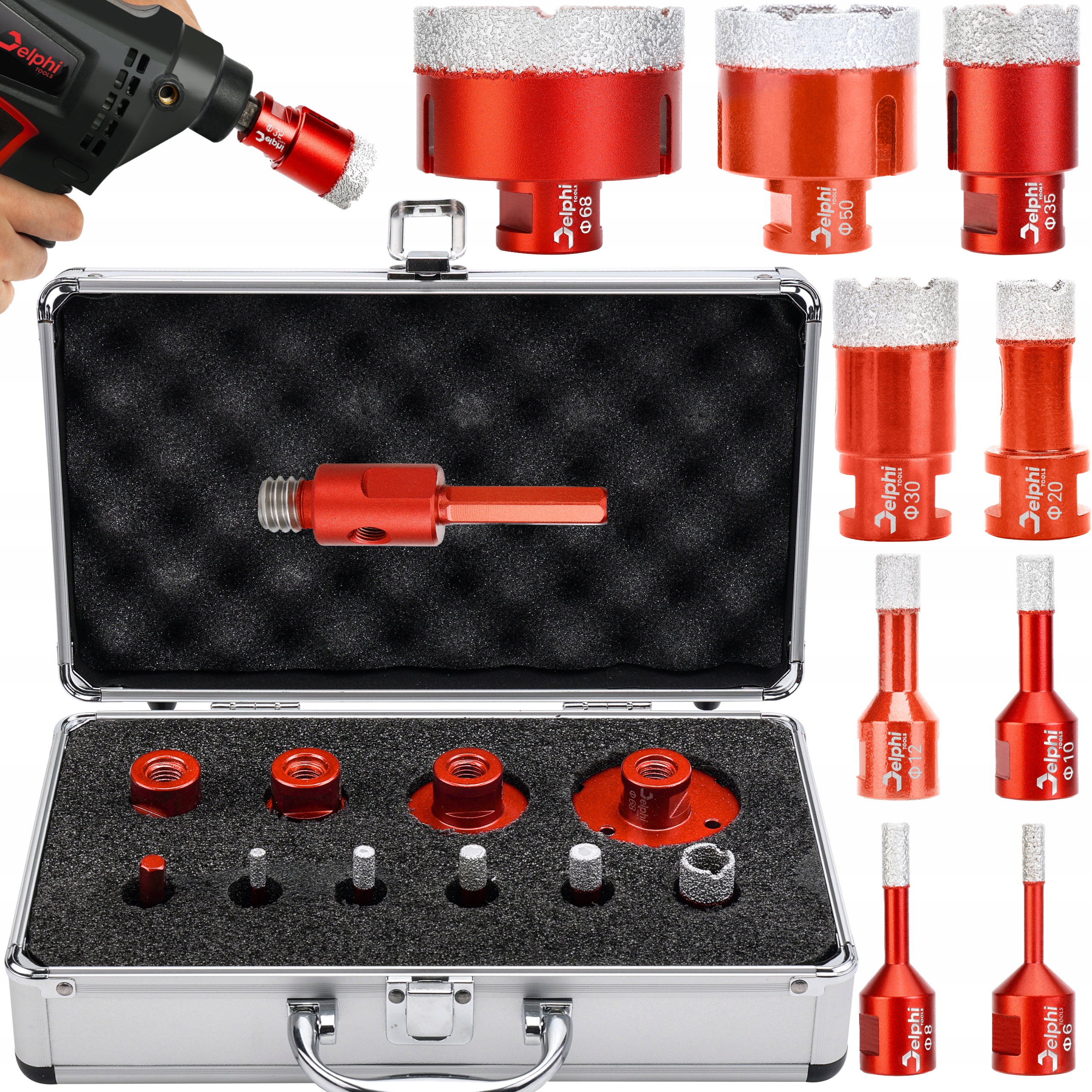 Набор алмазных кольцевых пил Delphi, 9 предметов ⌀ 6,8,10,12,20,30,35,50,68 мм ✔️