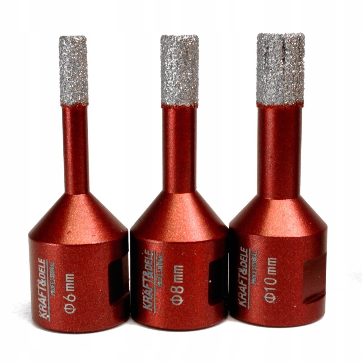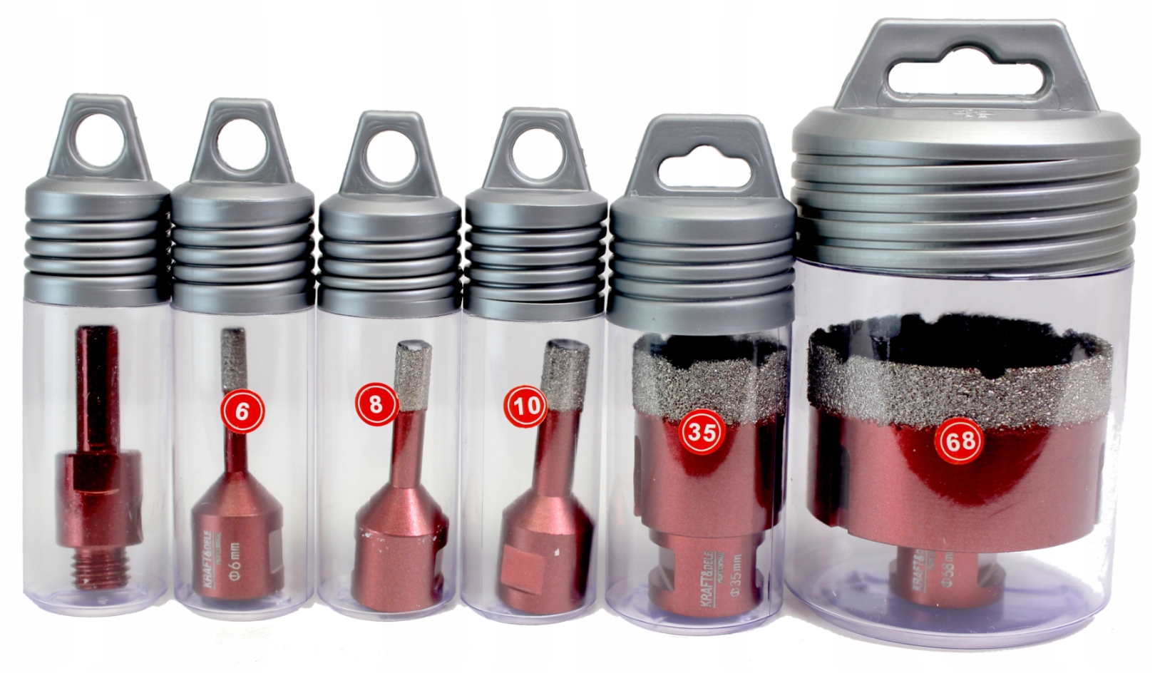 Набор алмазных коронок польской марки Kraft&Dele, модель KD11229, для мокрого сверления без удара в керамограните, керамике, мраморе, керамограните и твердой плитке.