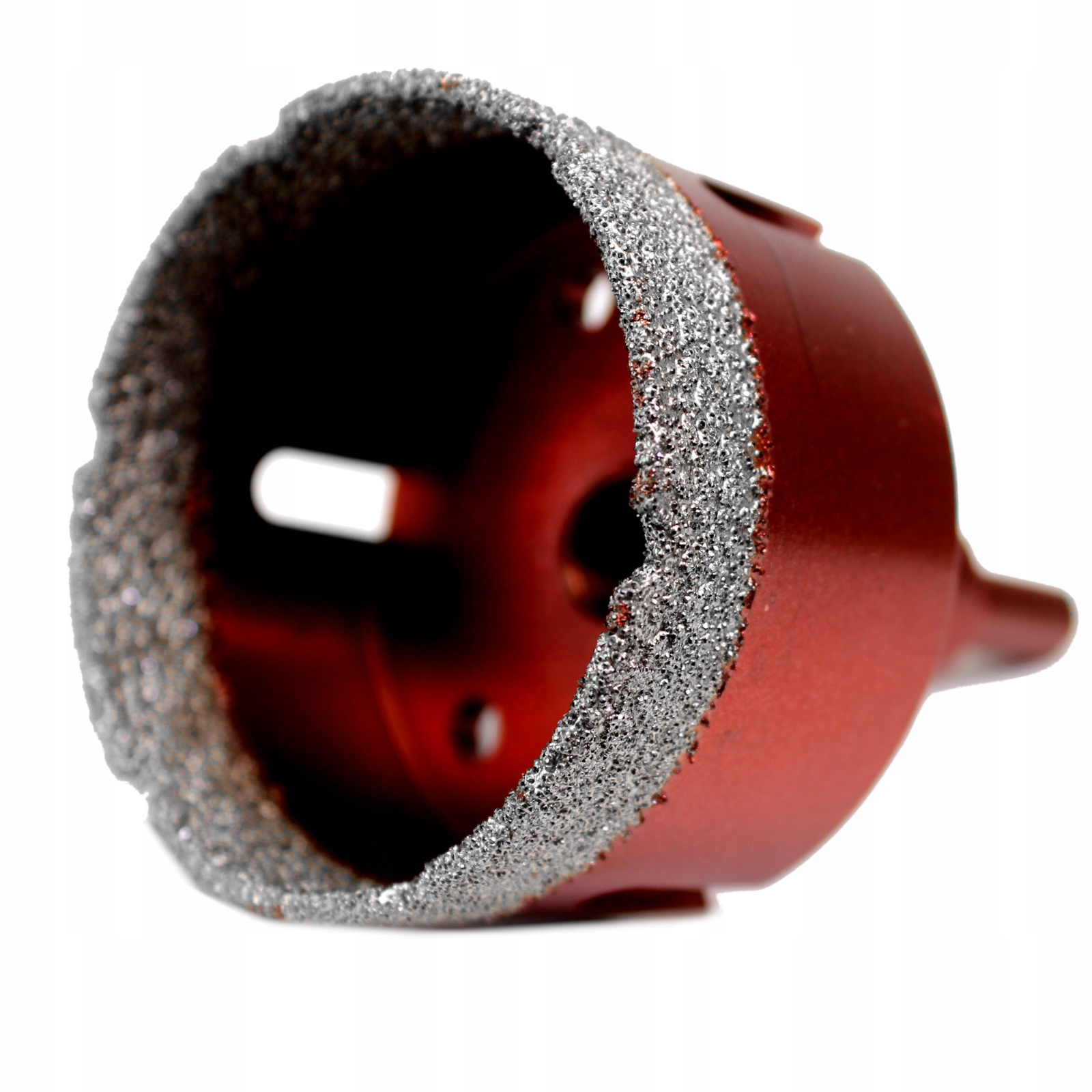 Кольцевая пила изготовлена из высококачественной углеродистой стали, а рабочая часть представляет собой очень мелкую и плотную алмазную крошку, припаянную в вакууме к цилиндрическому стальному корпусу.