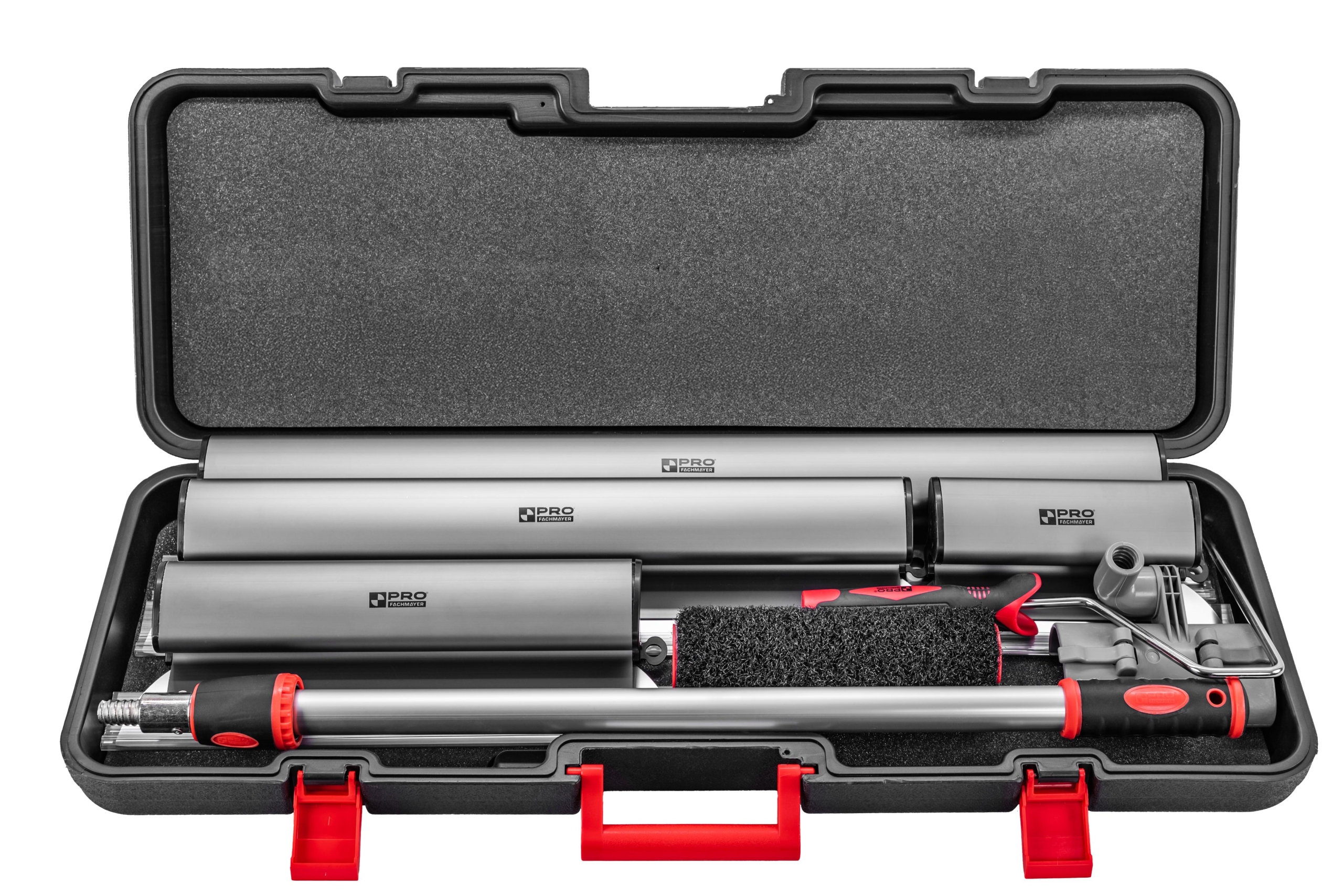 - Телескопическая палка с адаптером, регулируемая по длине до 1,4 м: Позволяет удобно заполнять более высокие части стен и потолков без необходимости использования лестницы.