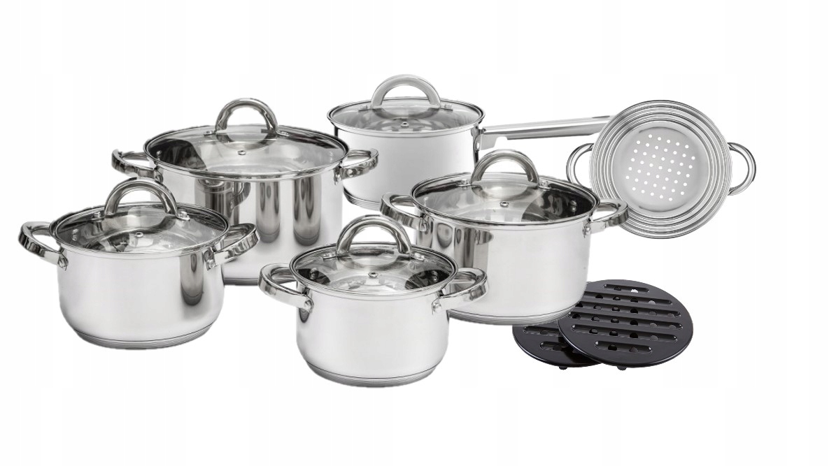 Набор ягодных горшков 13-элементов по амбициям. Горшки с выносливыми стеклянными крышками и металлическими ручками. Они сделаны из высококачественной нержавеющей стали. Горшки в современной и элегантной форме с зеркальной отделкой внутри и снаружи. На внутренних стенах существует шкала, которая облегчает измерение жидкости. Горшки имеют толстое дно (0,5 мм алюминий + 1,5 мм железо + 0,5 мм алюминия), обеспечивая быстрое и равномерное нагрев сосуда и толстые округлые стены, тип живота (0,5 мм). Ручки прикреплены к кастрюлю с заклепками. Набор ягодных горшков легко поддерживать чистую, адаптированную для мытья в посудомоечных машинах, подходящих для всех видов плит, включая индукцию.