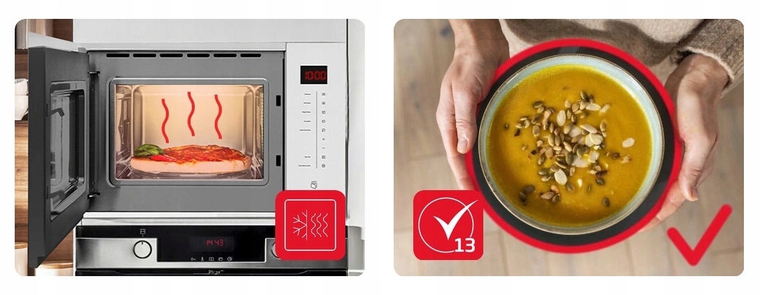 Хрустящая еда на гриле прямо из микроволновой печи? Просто так! Микроволновые печи Amica оснащены функцией Combigrill, которая сочетает в себе микроволны и функцию гриля. Благодаря этому через некоторое время ваше блюдо отлично прогреется, а сверху покроется вкусной хрустящей корочкой. Приятного аппетита!