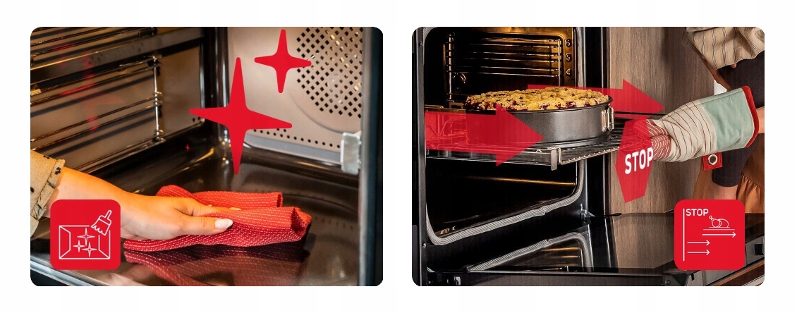 Как открыть духовку, если держать противень обеими руками? Пусть он откроется сам! Amica знает, каковы повседневные потребности потребителей, поэтому в ручке духовки установлен специальный датчик. Теперь все, что вам нужно сделать, это аккуратно коснуться ручки в любом месте – рукой, локтем или плечом – и дверца духовки откроется автоматически! Это чрезвычайно удобное и уникальное решение, потому что Amica делает вещи действительно полезными в повседневной жизни. И теперь они могут быть у вас на кухне!