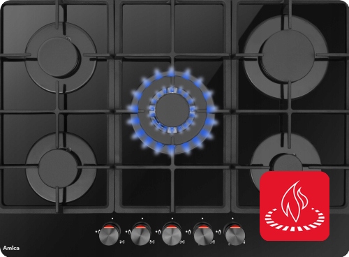 Отныне газовые варочные панели Amica имеют полный контроль над огнем. Благодаря 9 уровням мощности и интуитивно понятным ручкам вы можете точно настроить размер пламени в зависимости от типа готовящегося блюда. Меньшее пламя, на уровне 2–3, идеально подходит для тушения продуктов, уровни 6–7 оптимальны для приготовления овощей, а уровни 8–9 – для жарки мяса или рыбы. Готовите ли вы, тушите, разогреваете или жарите – регулируйте размер пламени в соответствии со своими потребностями и оптимально используйте энергию! Комфортно, экономично и вкусно!