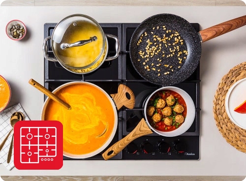 Вы готовите больше? На газовой плите Amica больше места для кастрюль большего размера! Благодаря новому дизайну были увеличены расстояния между конфорками при сохранении стандартных размеров варочной панели. Поэтому теперь вы можете использовать сосуды большего размера – причем несколько одновременно. Больше места для большего комфорта при приготовлении пищи!