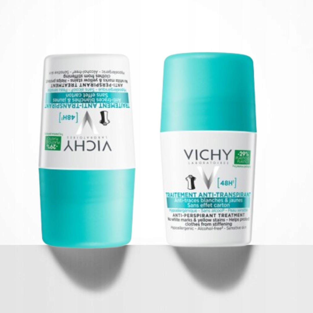 Инновационный шариковый антиперспирант линии Vichy, который активно действует двумя разными способами, подавляя процесс чрезмерного потоотделения и снижая риск появления видимых пятен на одежде. До 48 часов эффективной защиты с момента нанесения!