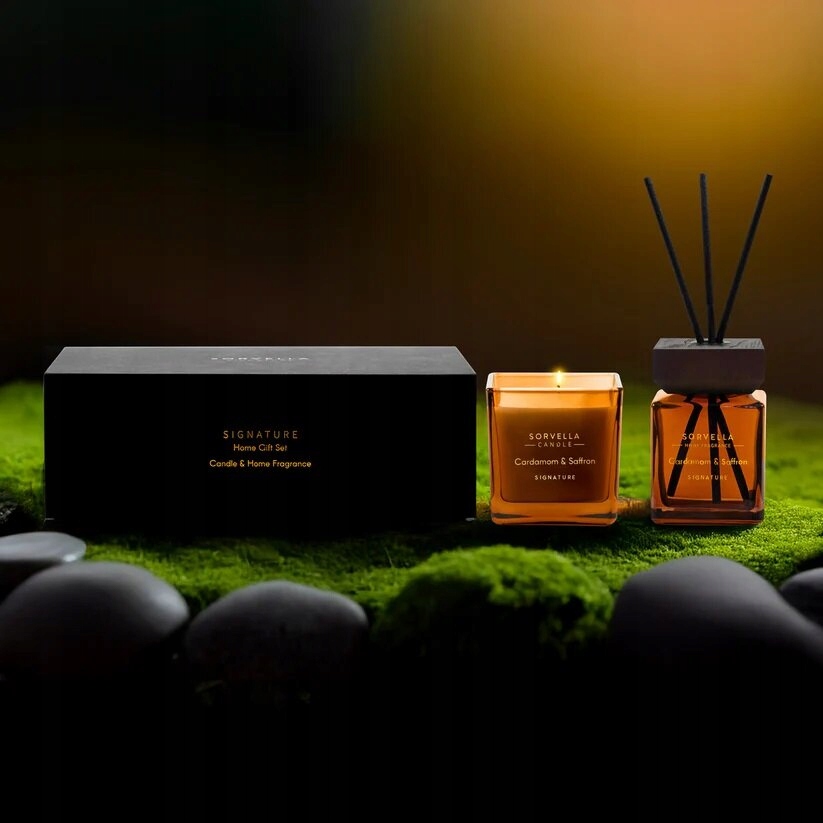 Набор Sorvella Signature с кардамоном и шафраном — это уникальная парфюмерная композиция, сочетающая в себе ароматические свечи 200 г и стик-диффузор 200 мл, обеспечивающие длительные и элегантные ароматические ощущения в вашем интерьере. Аромат открывается бодрящими верхними нотами: кардамоном, острым перцем и шафраном, которые создают интенсивный пряный аккорд. В сердце композиции теплые ноты уда, сандала и гваякового дерева, которые придают аромату ощущение уюта и роскоши. База аромата, состоящая из розы и лабданума, придает всему утонченность, гармонию и утонченную элегантность.