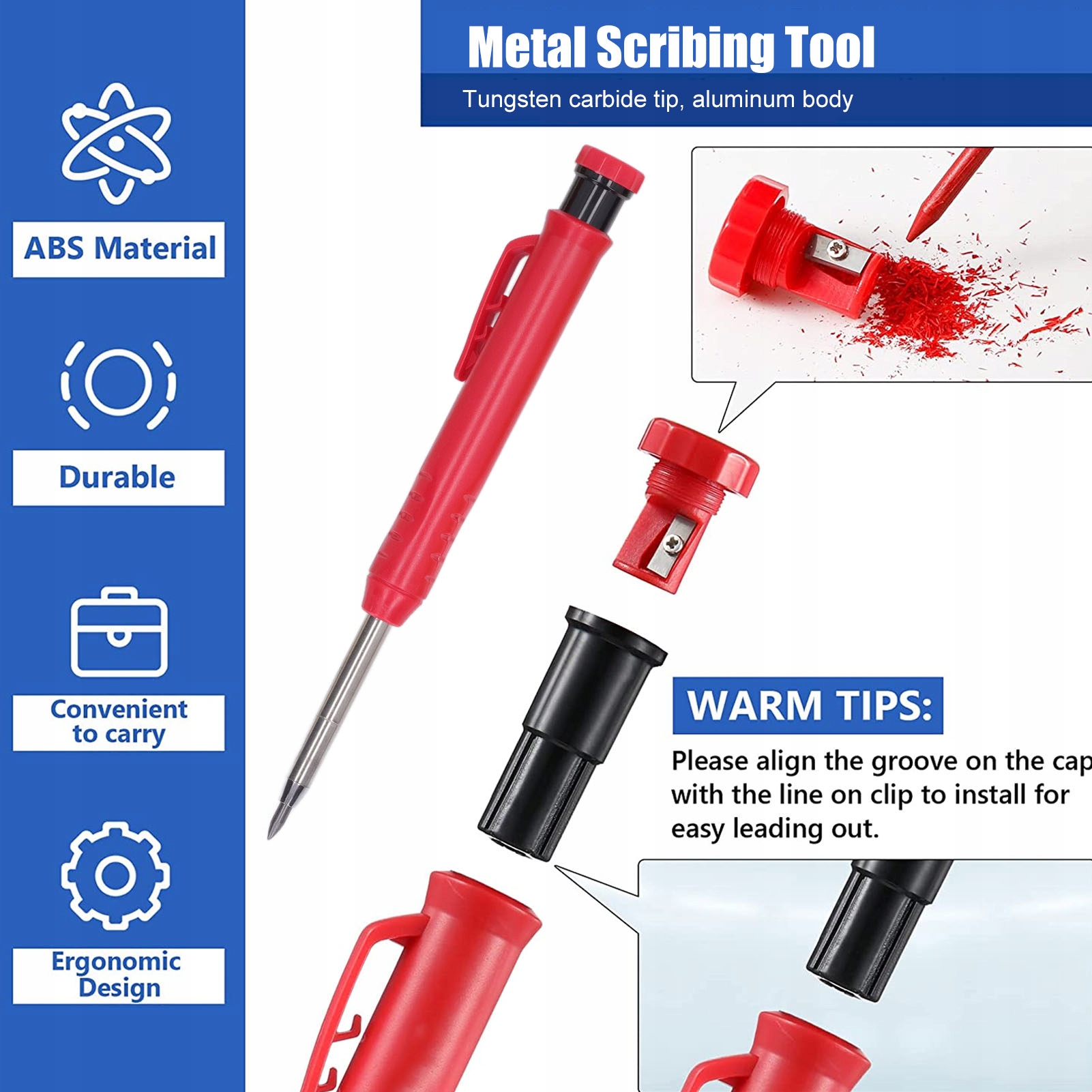 Особенность: 1. Основные цели: набор карандашей столярных изделий, оснащенные точками и заменяемыми вставками, подходящие для маркировки и втирания дерева, пластика, стали и стен и т. Д.