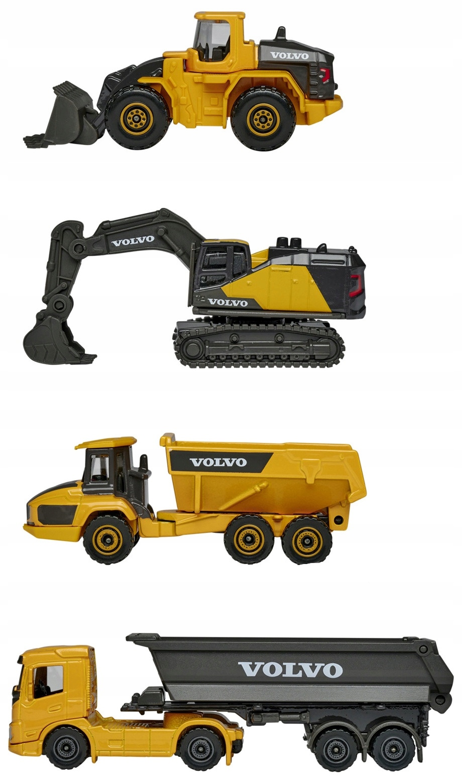 Подарочный набор Majorette VOLVO из 4 предметов – поддержка на стройке в детской комнате, модели обязательно понравятся любители строительной техники как старшего, так и младшего возраста.