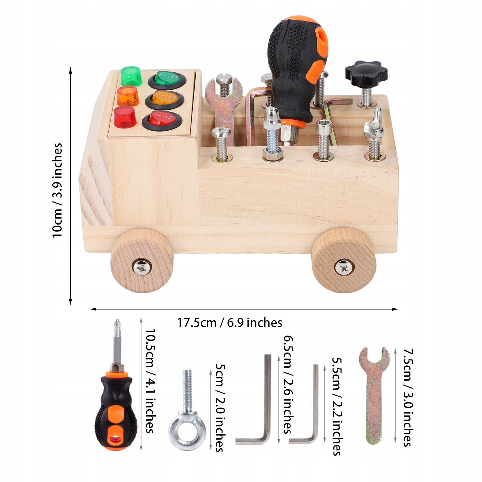 1. Инновационный дизайн для бесконечного обучения: набор отверток сочетает в себе пластину отвертки и игрушечный выключатель лампы, предлагая бесконечные возможности обучения и игр. Помогает развивать цветовосприятие и мелкую моторику, когда дети сами собирают колеса грузовика.