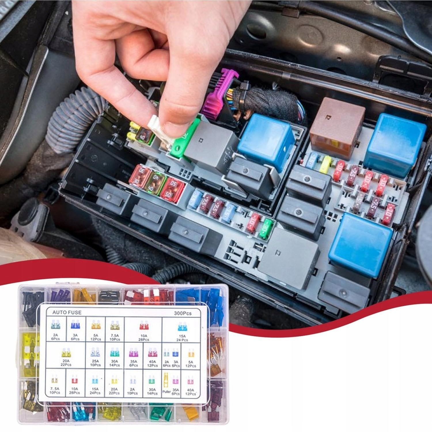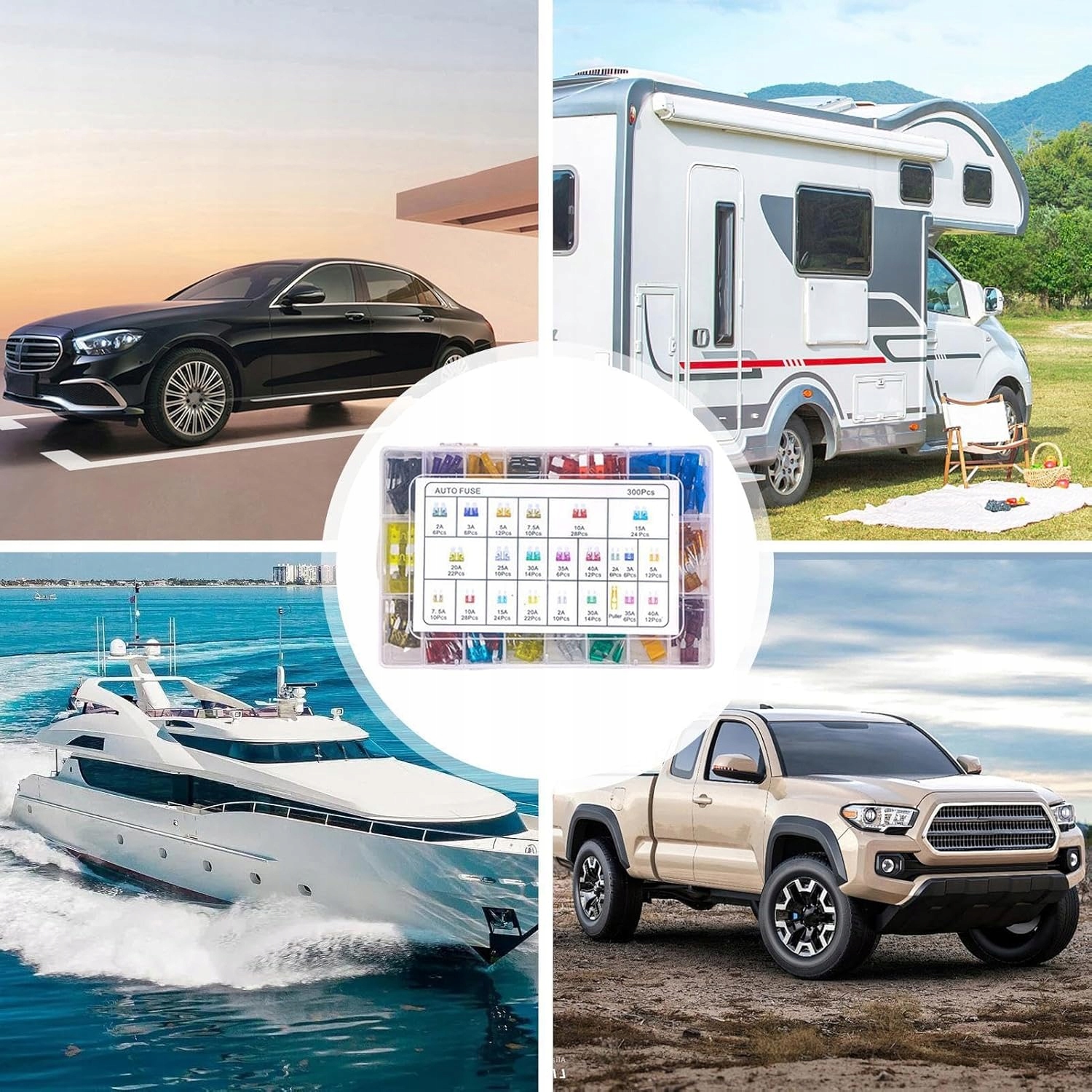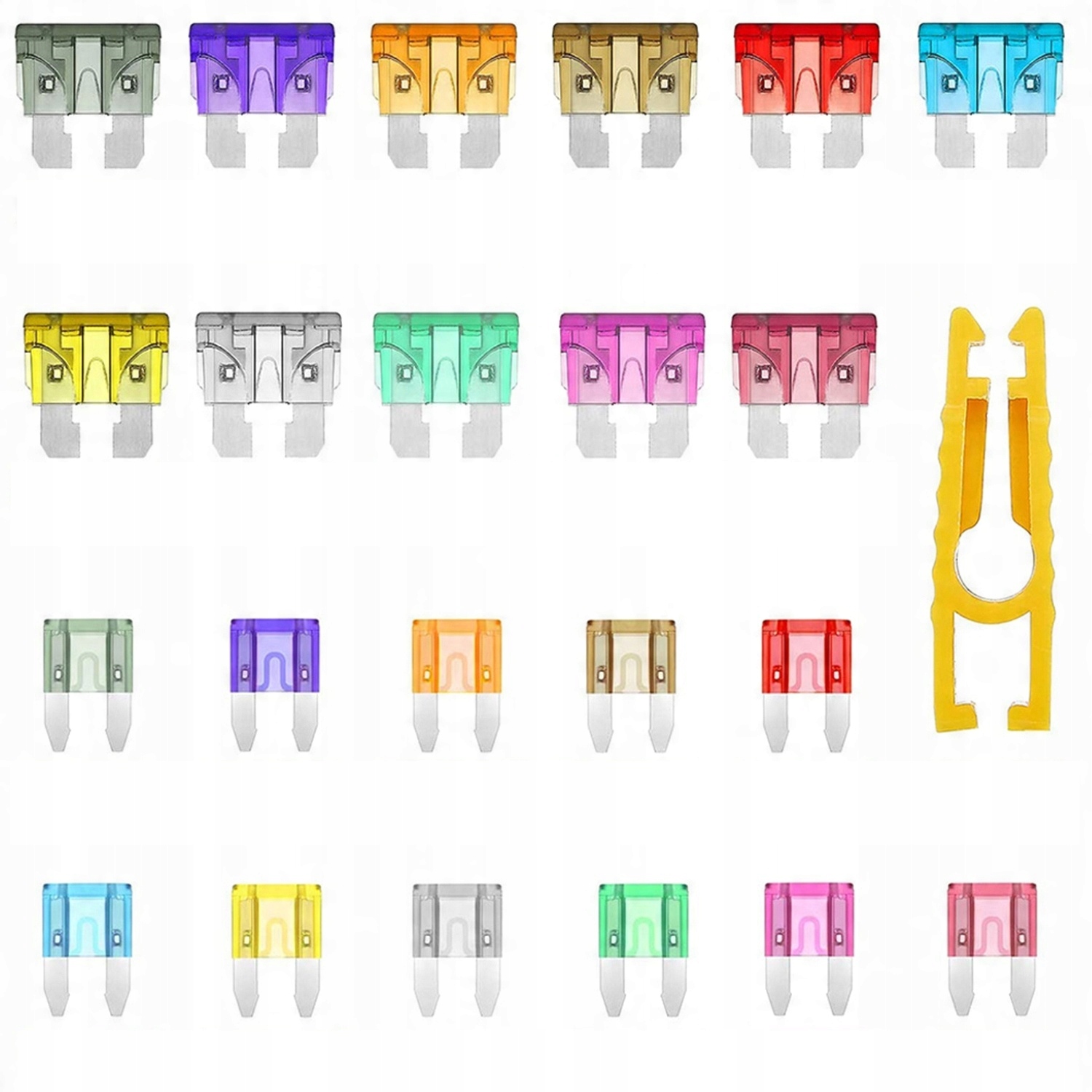 Подходит для всех необходимых размеров: Набор предохранителей включает 150 штук мини-размера и 150 штук стандартного размера. Три типа автоматических предохранителей имеют 11 номиналов тока (2А/3А/5А/7,5А/10А/15А/20А/25А/30А/35А/40А), оснащены съемником предохранителя.