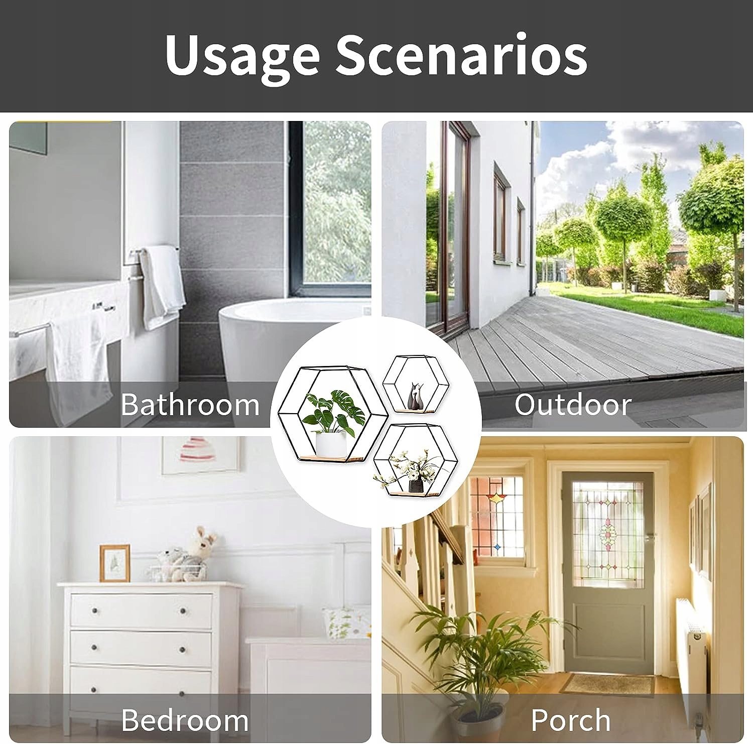 Шестиугольная настенная полка, металлическая, набор из 3 шт., декоративная подвесная полка, настенная полка, настенные полки для украшения стен в гостиной, спальне, ванной комнате, кафе и отеле