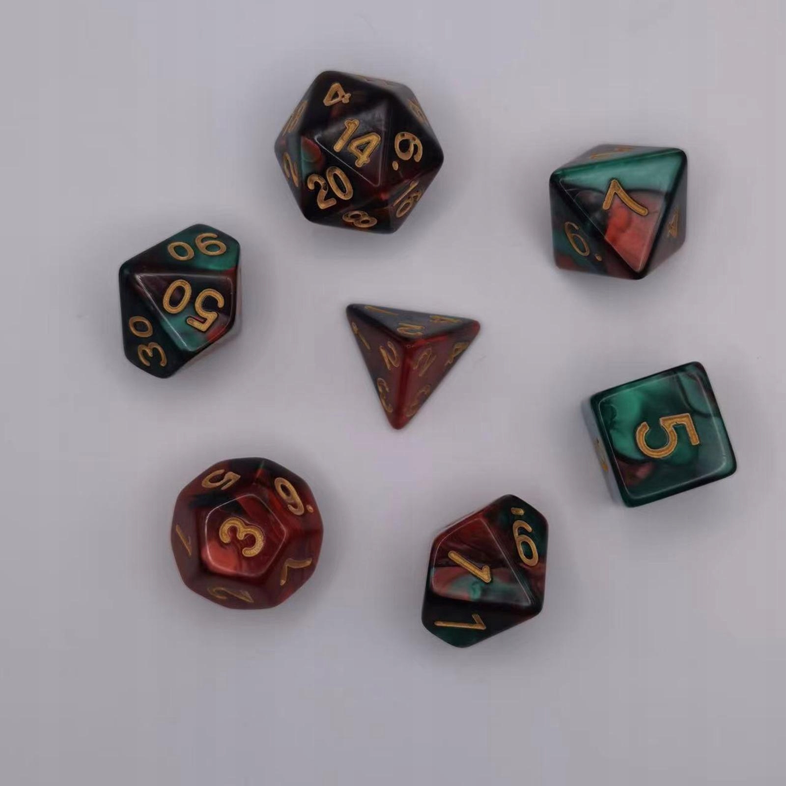 7шт. Набор многогранных кубиков. Развлекательные игрушки. Многогранные кубики. Красный, зеленый.