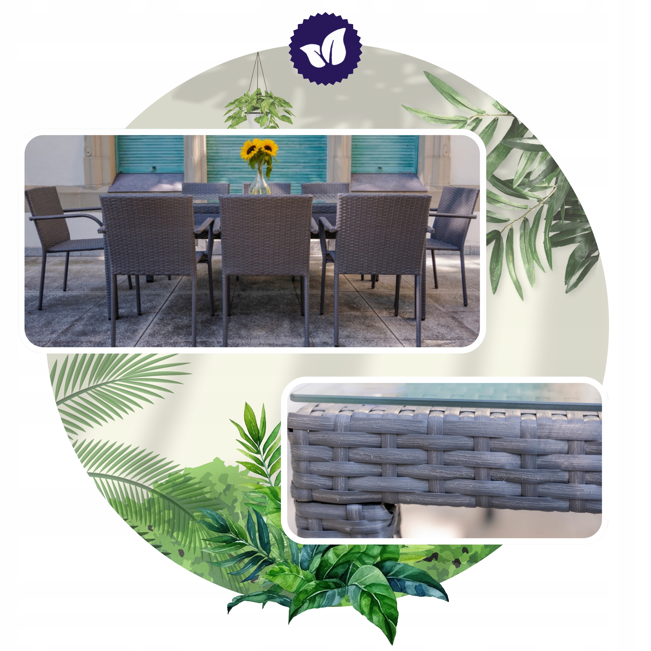 ✅ Материал: высококачественный техноротанг, устойчивый к дождю и УФ-лучам